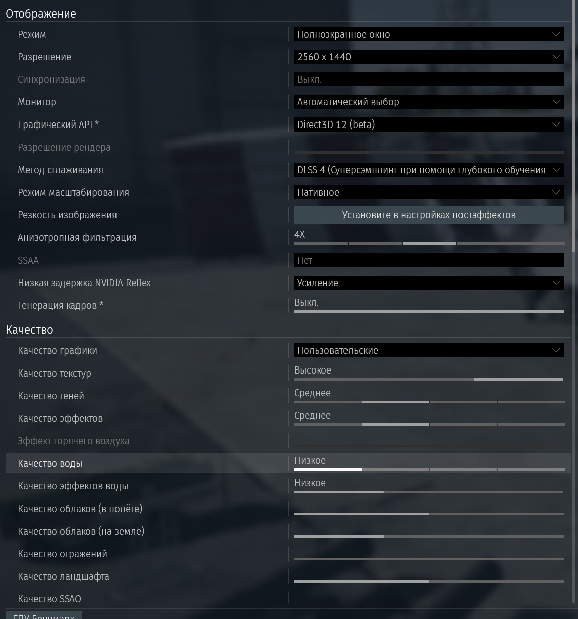 Настройки игры + ультра текстуры, что тоже дополнительно грузит VRAM.