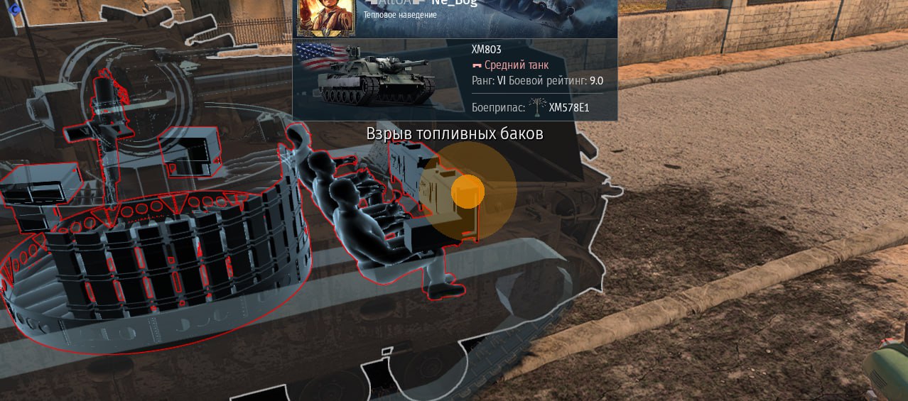 Смерть от попадания в внешний бак,я уже даже не знаю как на этом куске стали играть, ни увн чтобы от позиции и башни играть,ни скорости чтобы в борта обходить, ни живучести и/или пробоя с уроном чтобы в лоб идти,и в конце концов даже радара нет чтобы быть ПВО