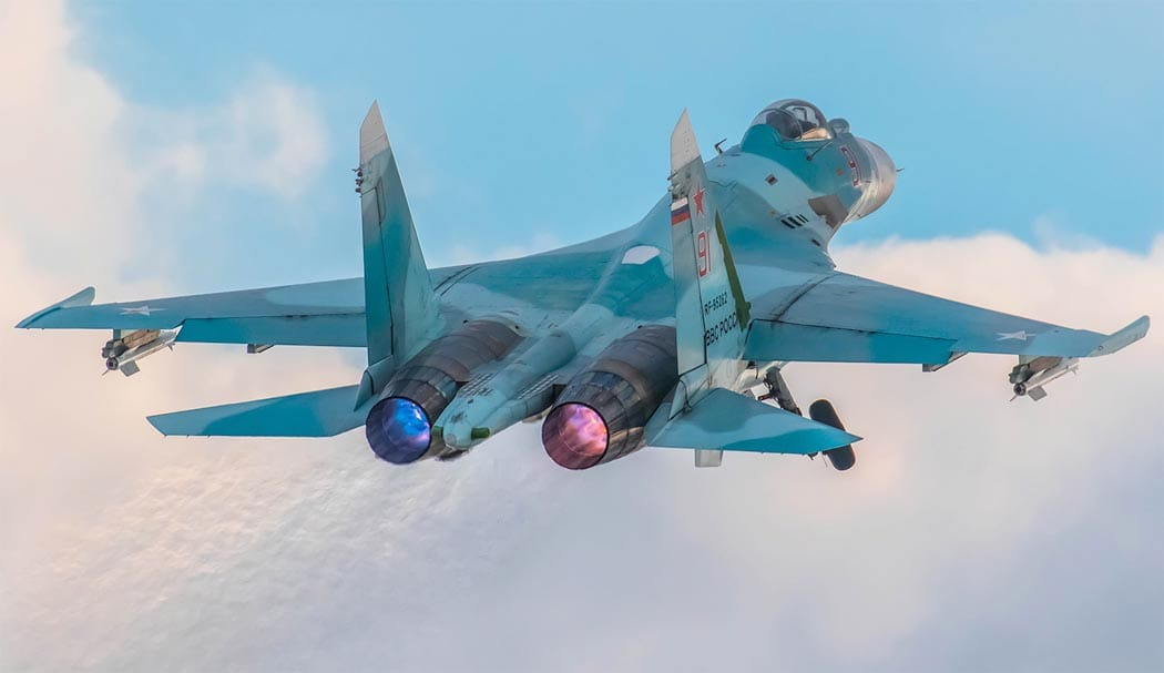 Сопла двигателей семейства АЛ-31 (и АЛ-41 в частности) на Минимальном газу (он же 0% по игре) устанавливает ПОЛНОЕ раскрытие створок сопел, в то время как на ПФ (полный форсаж, 110%) не раскрывает сопло полностью.