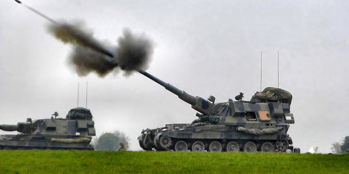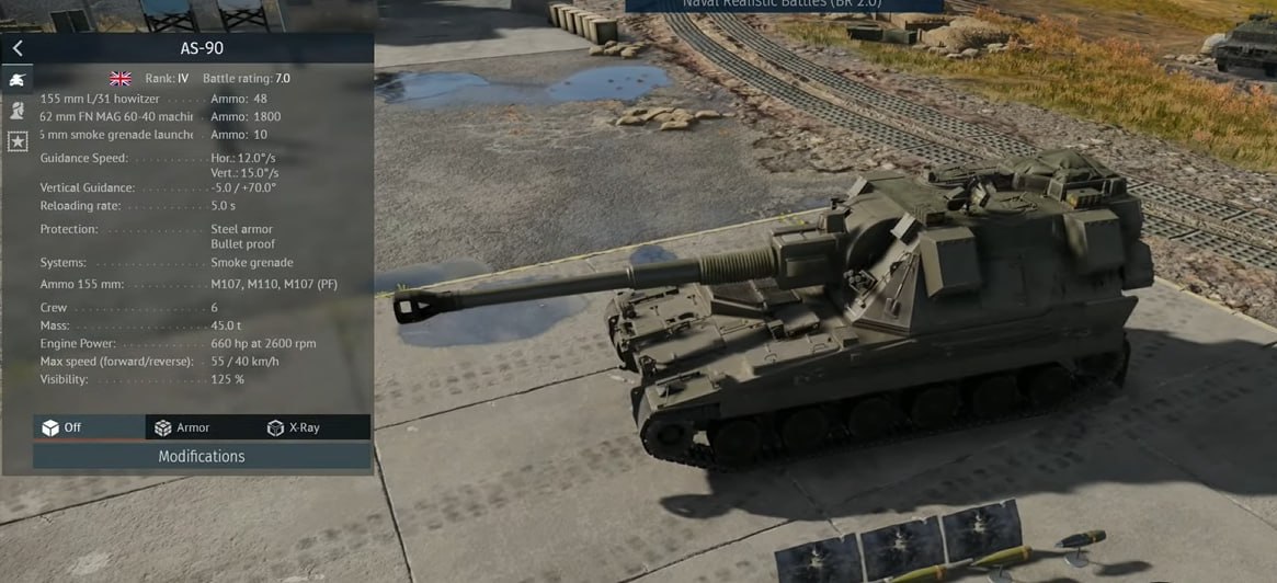AS-90 фирмы Викерс - самоходная артиллерийская установка Великобритании создана в в 1981-1986 годах и предназначалась для замены устаревших британских САУ «Эббот» и американских САУ M109.