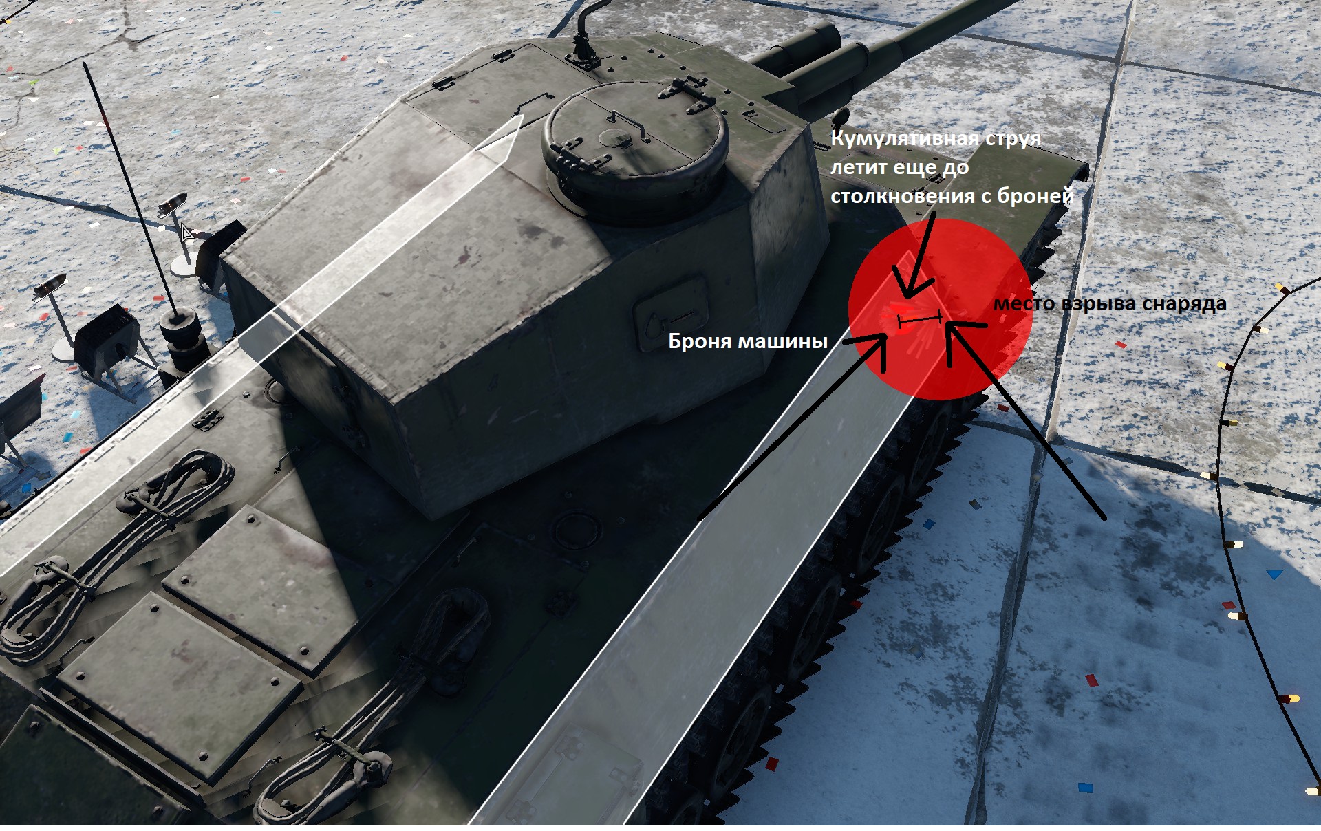 Кумулятивный снаряд взводится еще до соприкосновения брони противника, как будто попал в экран, но экрана там нет