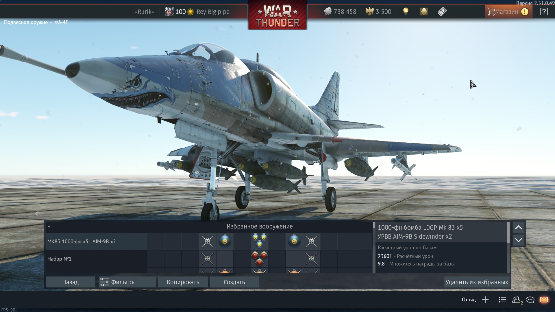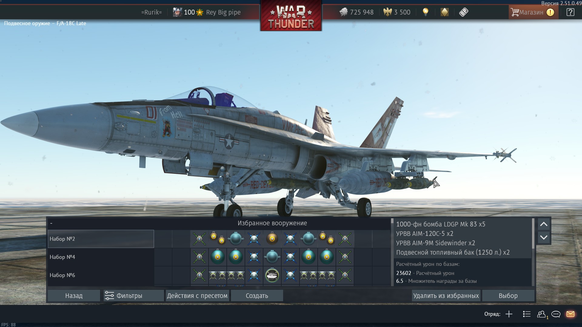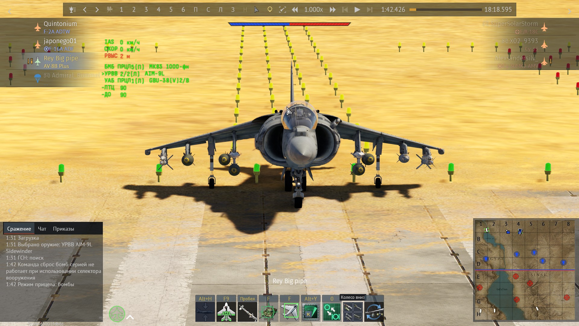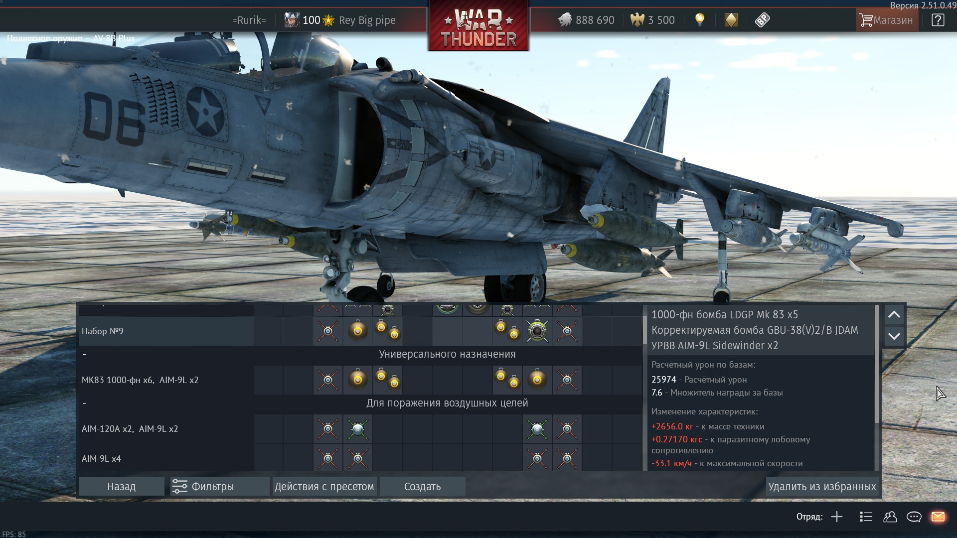 Но когда я купил прем Хорнэта с его 7.8 коофицентом для 5-ти бомб Мк-83, я был жестоко удивлён тем, что не смог взять даже 500 очков, получив все теже, как не у прем Хорнэта, 456 очков миссий! (И это болячка, как я понял - всех прем Хорнэтов, всех наций - написано 7.8, а считает как 6.5)
