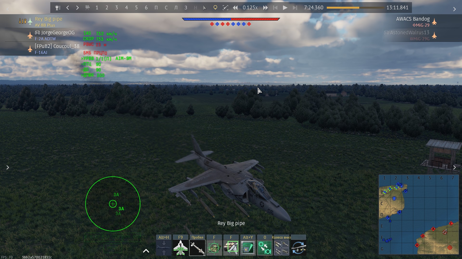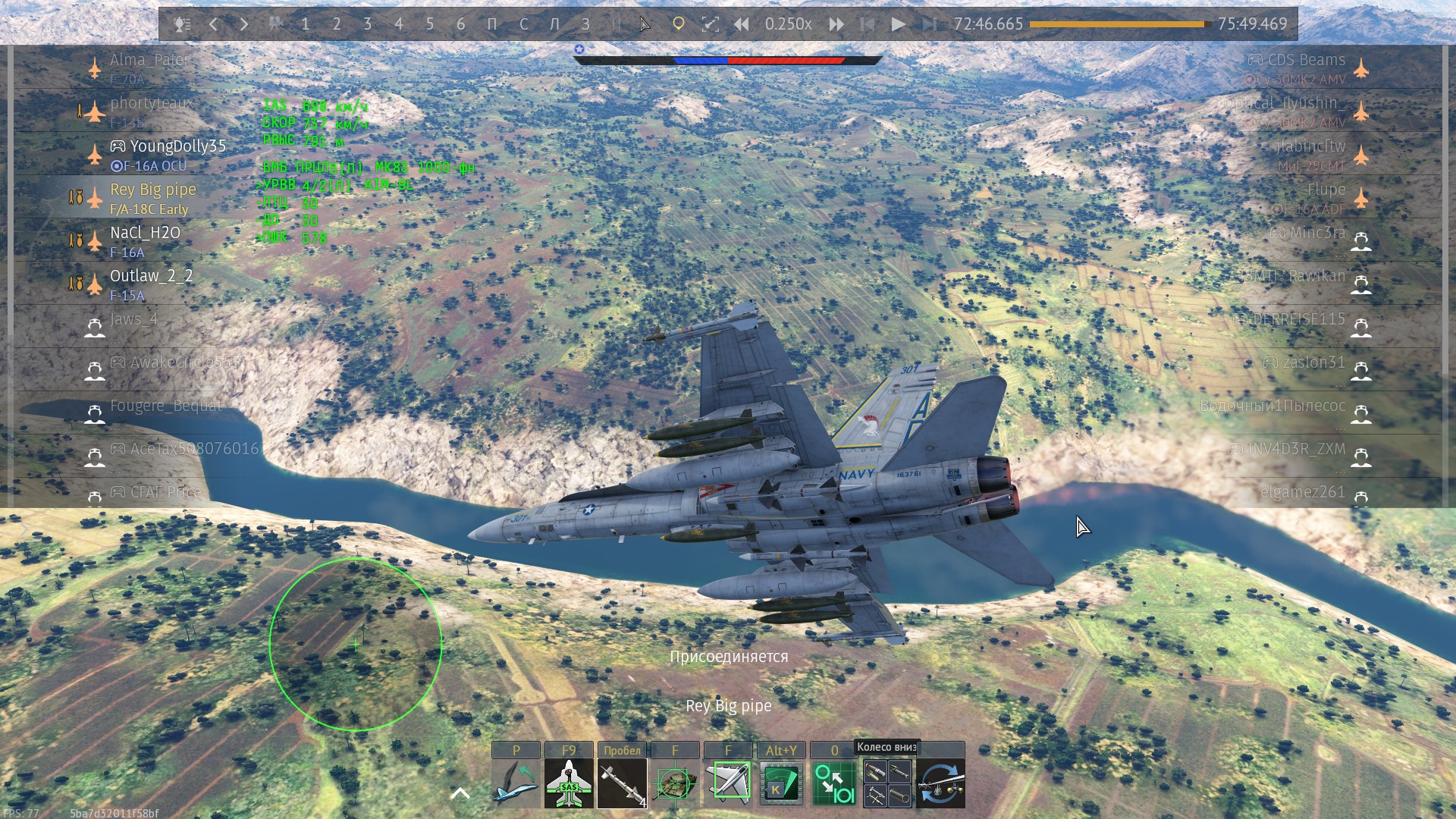 Вот примеры скринов, на темном фоне, пустыни, это F/A-18C+, а на зеленом фоне Въетнама - премиумный F/A-18C. Пять одинаковых бомб у обоих, цели те же - одна база-кружок. (там что очки у обоих одинаковы, что вес ТнТ, хотя коофиценты разные - ведь один даже “Прем”!)
