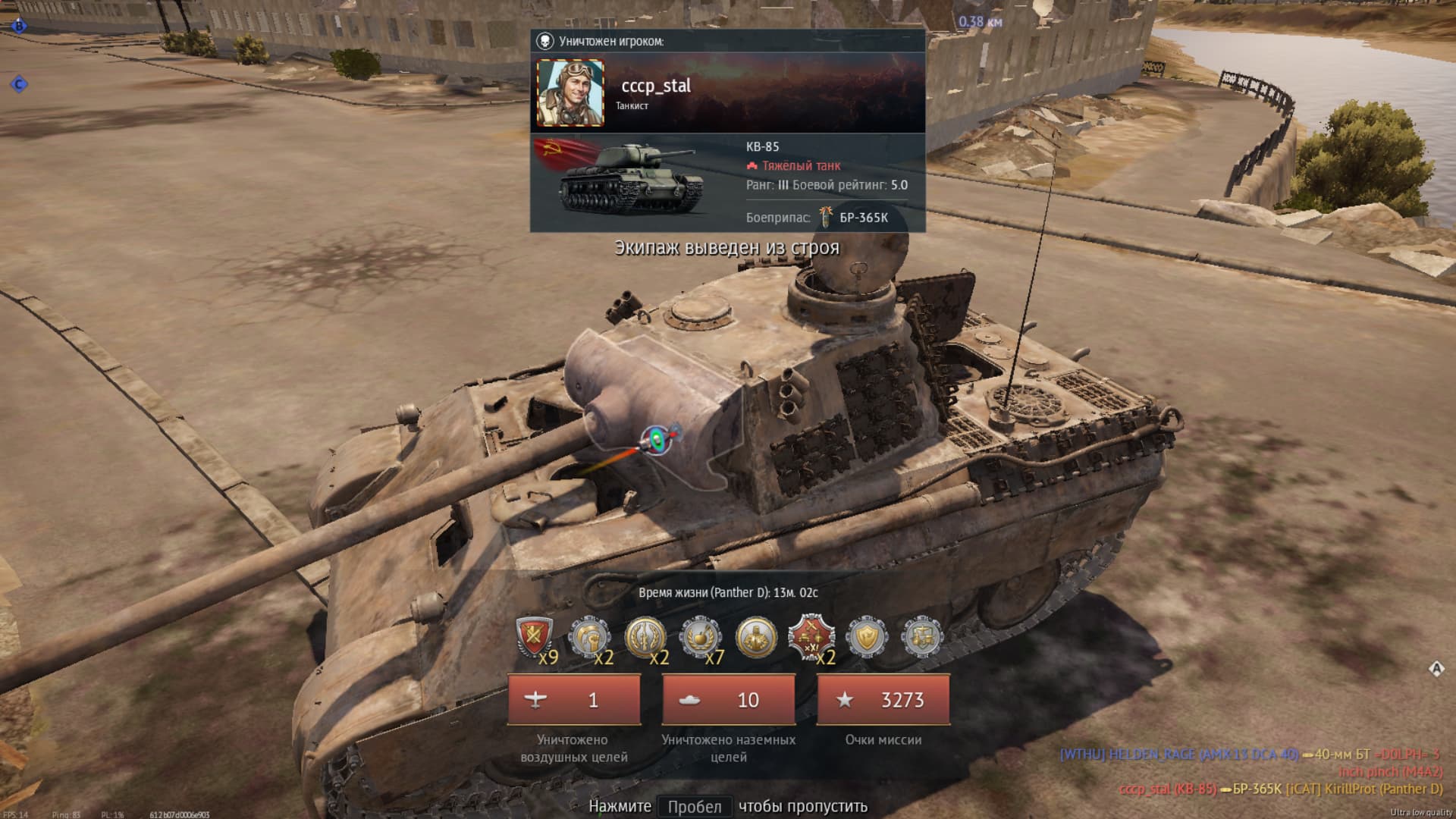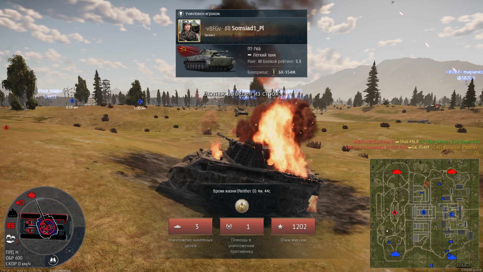А, ладно, видать просто в бою произошёл баг вартундера когда фраг не регает. На повторе он взорвался, но мне об этом в бою не сообщило