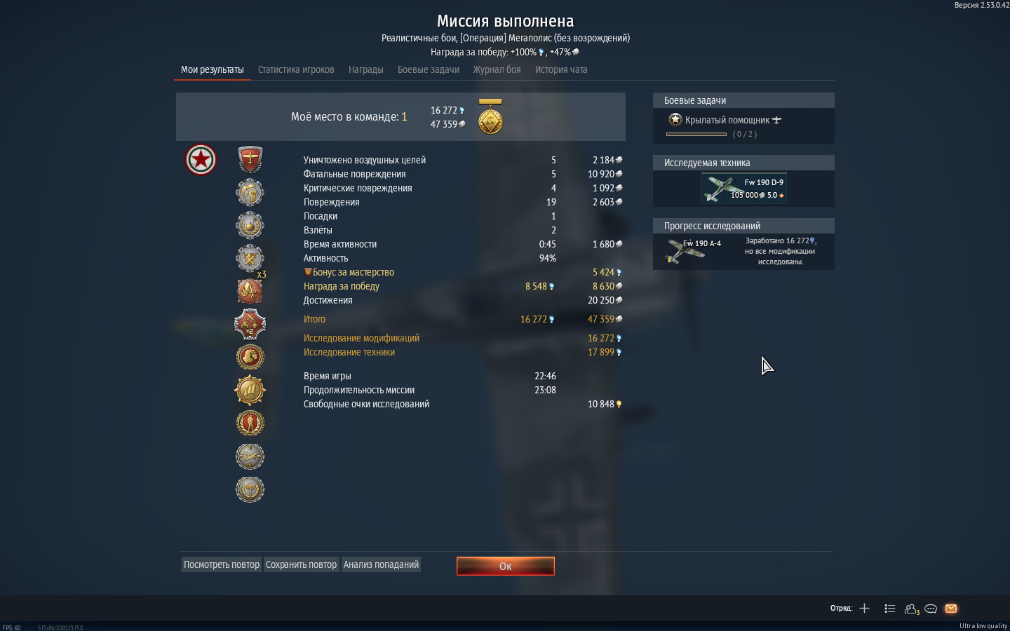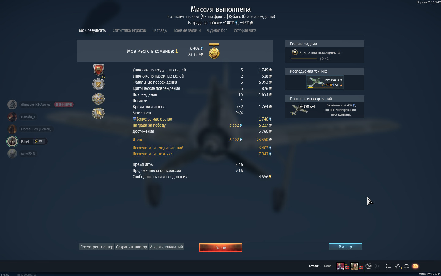 И кстати за эти 3 боя я получил 34 с лишним тысячи опыта (исследовал Fw 190 D-9)