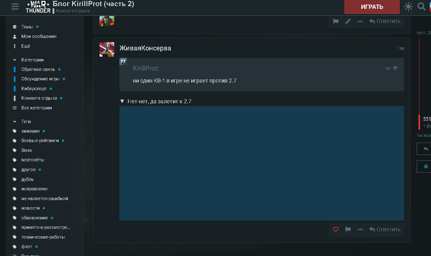 Весь форум мечтает, чтобы кирюша исследовал бмпт и су34, а я мечтаю, чтобы кирюша исследовал скилл скриншота…