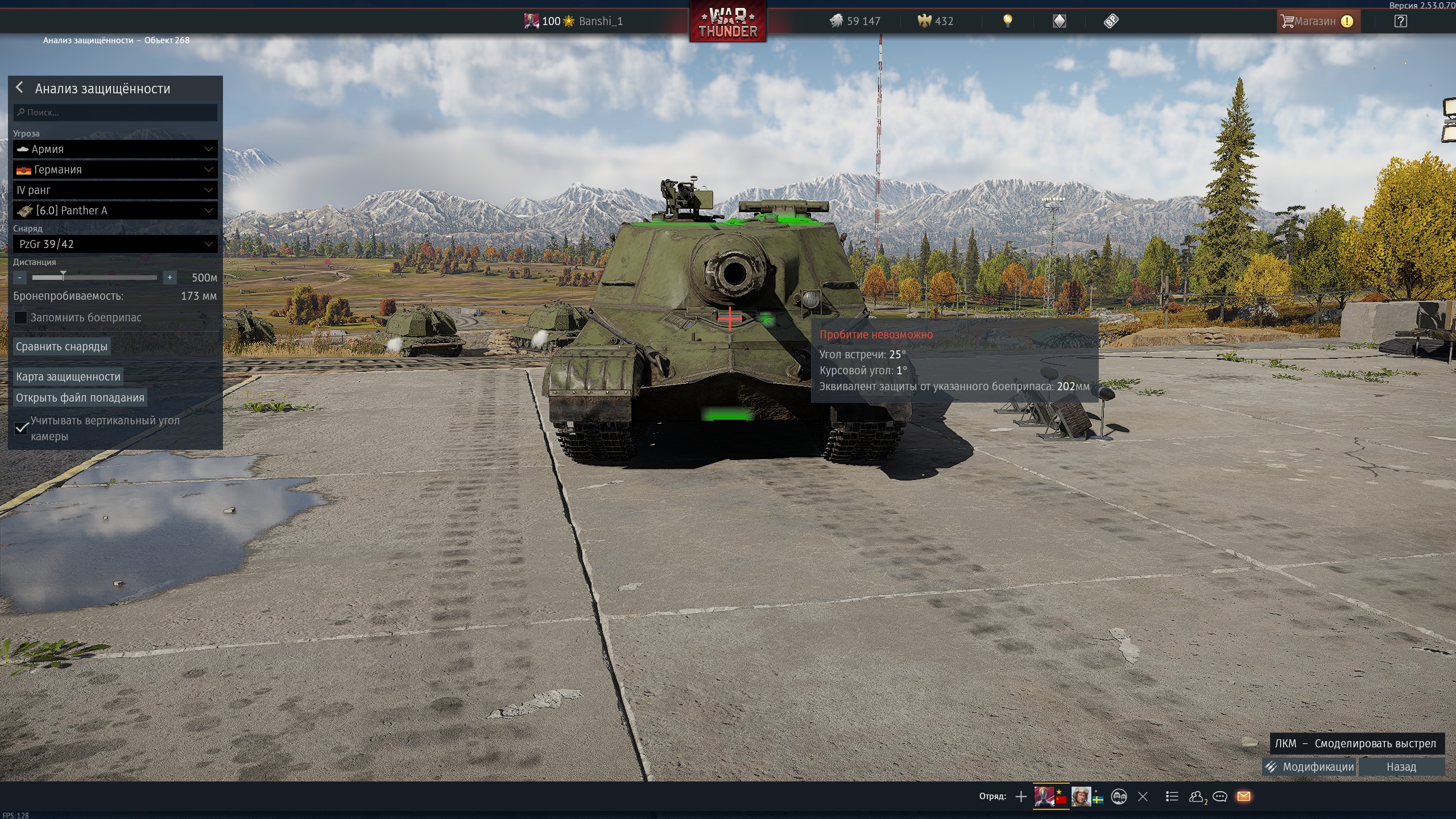 зато Т-34-85 на 5.7, хотя он пантеру в лоб может пробить лишь в маленькие треугольники или тонкую полоску в центре маски и то будет только минус башня, сам при этом тоже умирая в силует