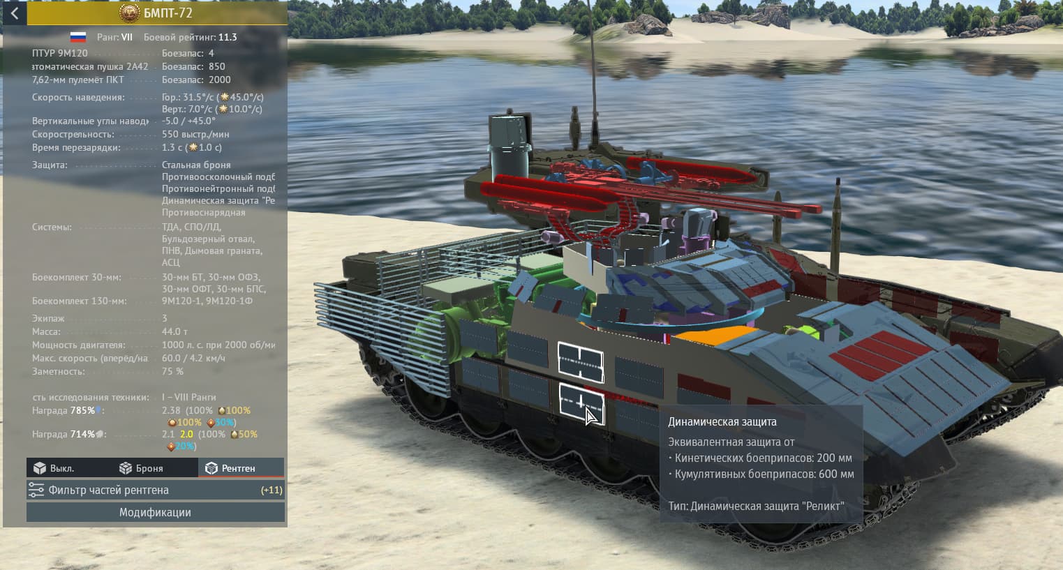 Вышеописанный неуязвимый БМ, бортовой реликт, танкующий топ ломы, подкрученная боеукладка в корпусе