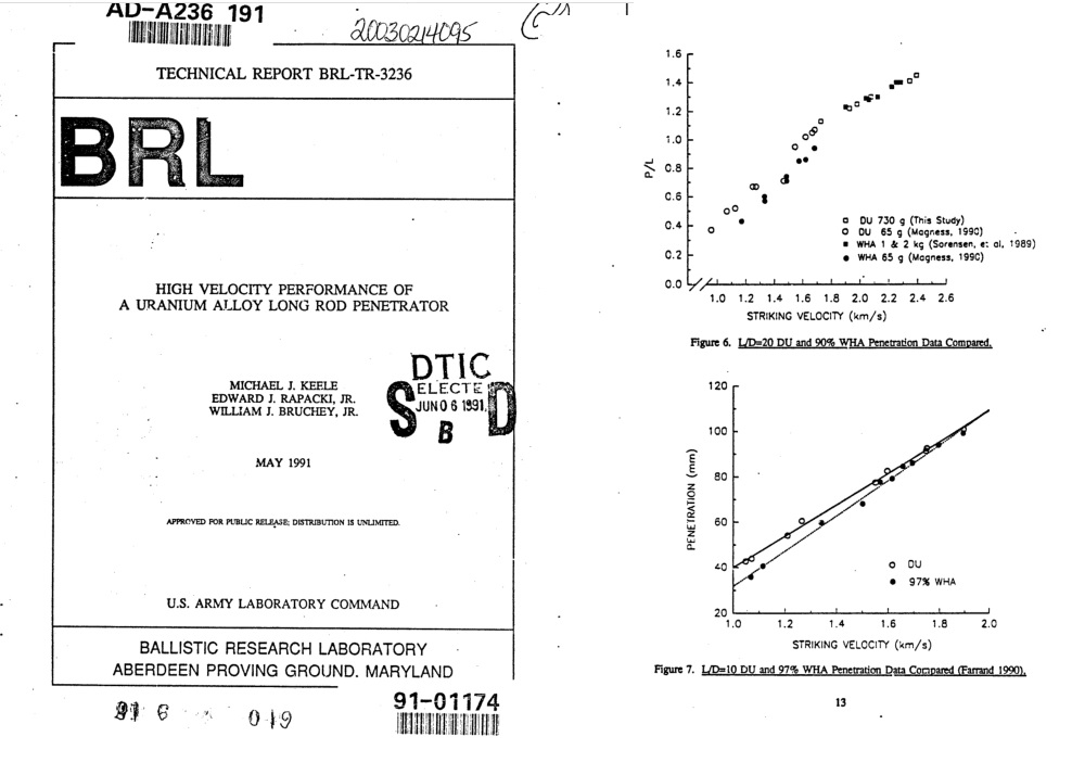 Вольфрам по идее да плотнее, но в реальности вольфрамовые сплавы уступают слегка, но не в этом проблема, урановые значительно лучше работают по разнесеной броне и наклоной. И по сути калькулятор должен выдавать те же параметры для одинаковой плотности и размера бопс, но он занижает пробой урановых бопс и повышает у вольфрамовых. Не говоря что нету учета эффекта затачивания. По этому у м829а1 около 680мм проболй должен быть. Что сходиться и с многими данными по нему, он длинее дм53 и еще урановый.