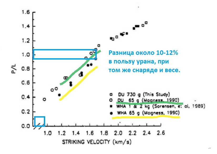 А табличкам пробитие советских боеприпасов, как мы видим урановые, которые даже раньше вольфрамовых сделали, пробивают все равно больше: