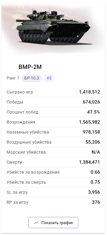166,602+76,074+еще сколько-то у британца. Итого имеем 242676 игр, ну и допустим +200к от марафнной техники, 450к игр. У одного терминатора со старой статой уже игр практически столько же, если еще и прем добавить, то их в 2 раза больше будет. Ну и двух из трех ТЫ В БАШНЮ ЗАБИРАЕШЬ, ТЕБЕ ВООБЩЕ ПТУР НЕ НУЖНО ИСПОЛЬЗОВАТЬ.