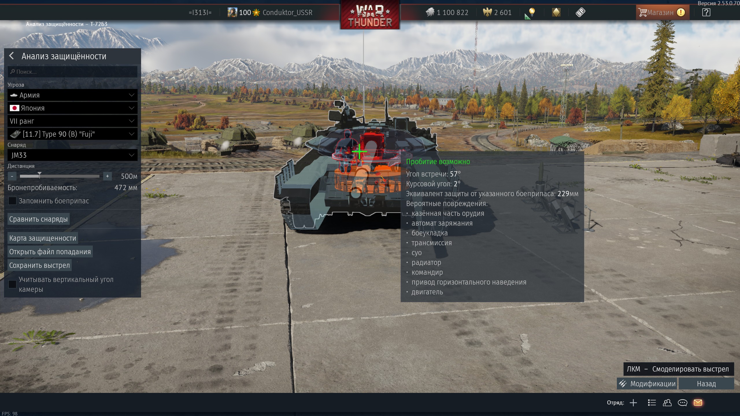 Вот тебе удачное попадание по Ч2 слабейшим снарядом своего БРа.