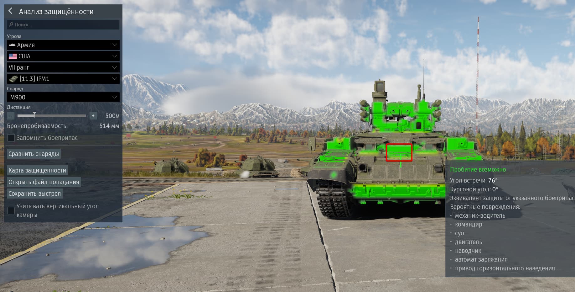 Поэтому урон может уйти в гуслю, в мехвода, в баки и т.п. или ПТУР может просто об ветку взвестись, на больших дистанциях противник может сместится и т.д. - в общем расход большой, а результат непредсказуем.