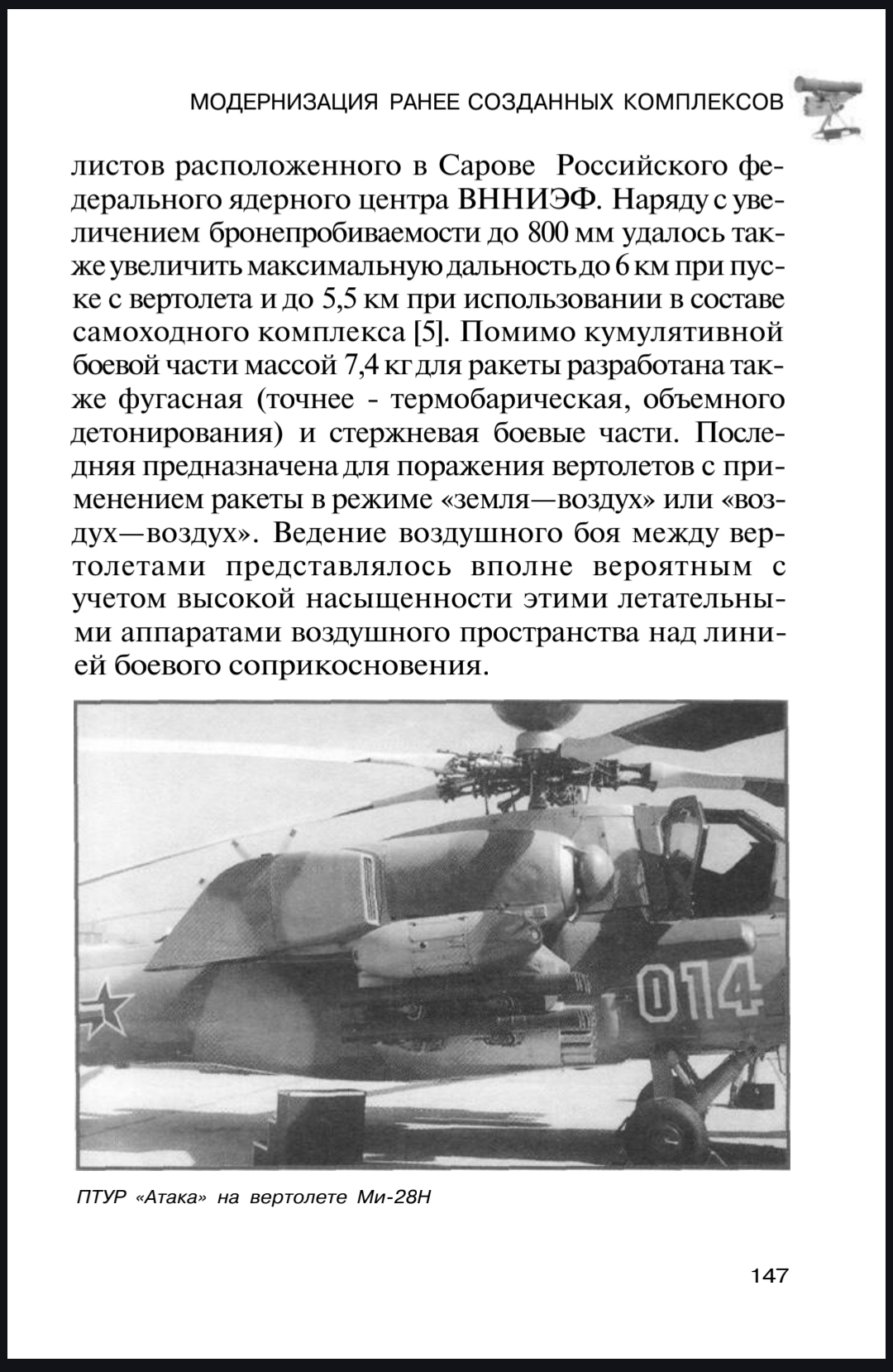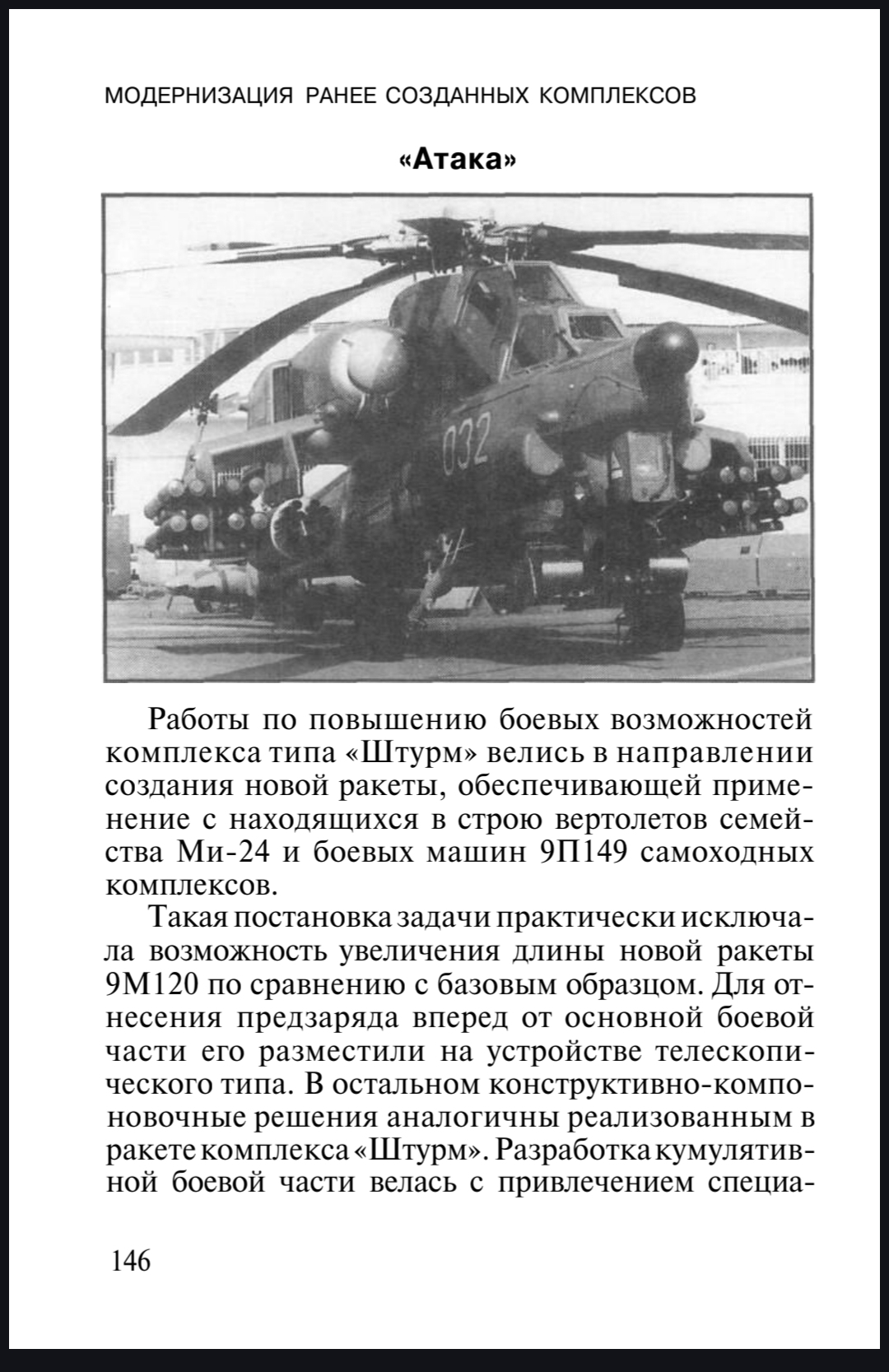 Ракета 9М120 — управляемая противотанковая ракета «Атака» с тандемной кумулятивной боевой частью. Дальность 6000 м. Бронепробиваемость БЧ — 800-850 миллиметров гомогенной брони с динамической защитой (по нормали к поверхности).