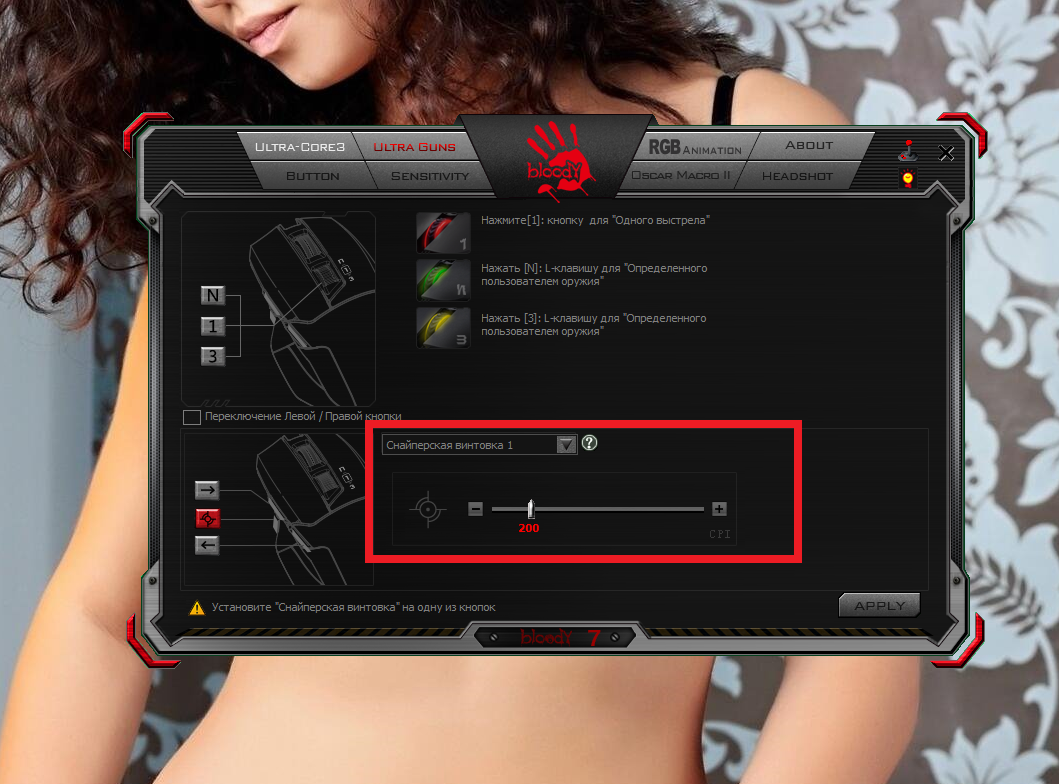 То есть при нажатии на кнопку мыши к тебя уменьшается значение DPI до 200? Если так, то подскажи, пожалуйста, как это сделать. У тебя Razer?