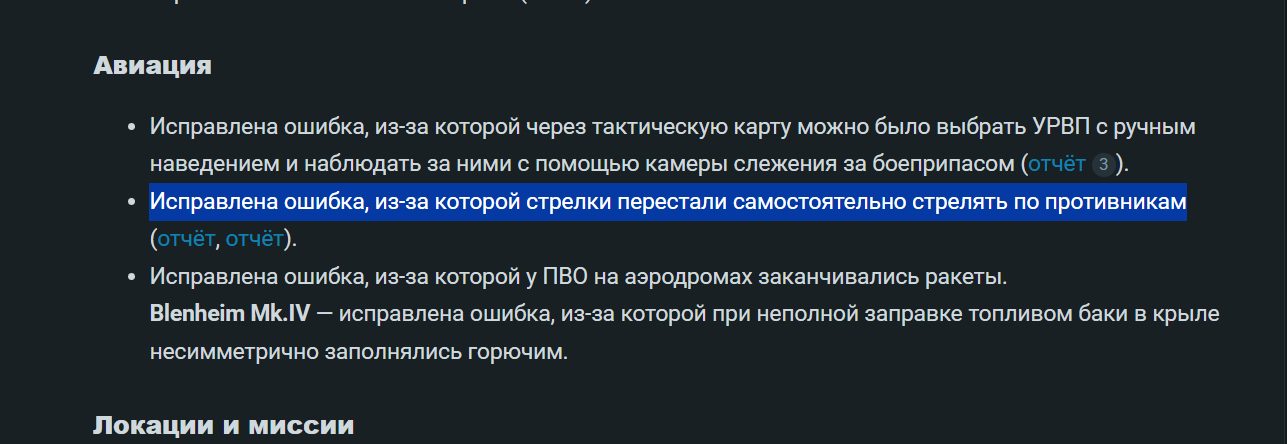 Странно ,что не написали нигде,что бортовых стрелков починили.Обычно пишут даже если дерево поправили,а тут целый бунт петровичей…Ну да ладно…)