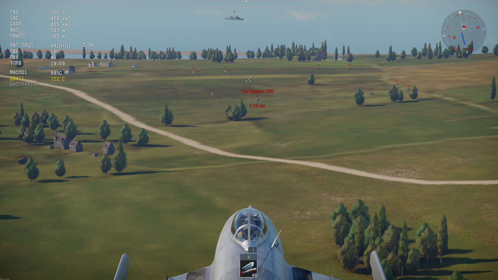 Там вычислитель примитивный, по типу лесенки. Конечно, такой тоже лучше, чем ничего, но это не крестик, который на более современных самолётах есть. И у ИШака его “лапти” немного наклонены вперёд от центральной оси фюзеляжа. Это тоже нужно учитывать при штурмовке