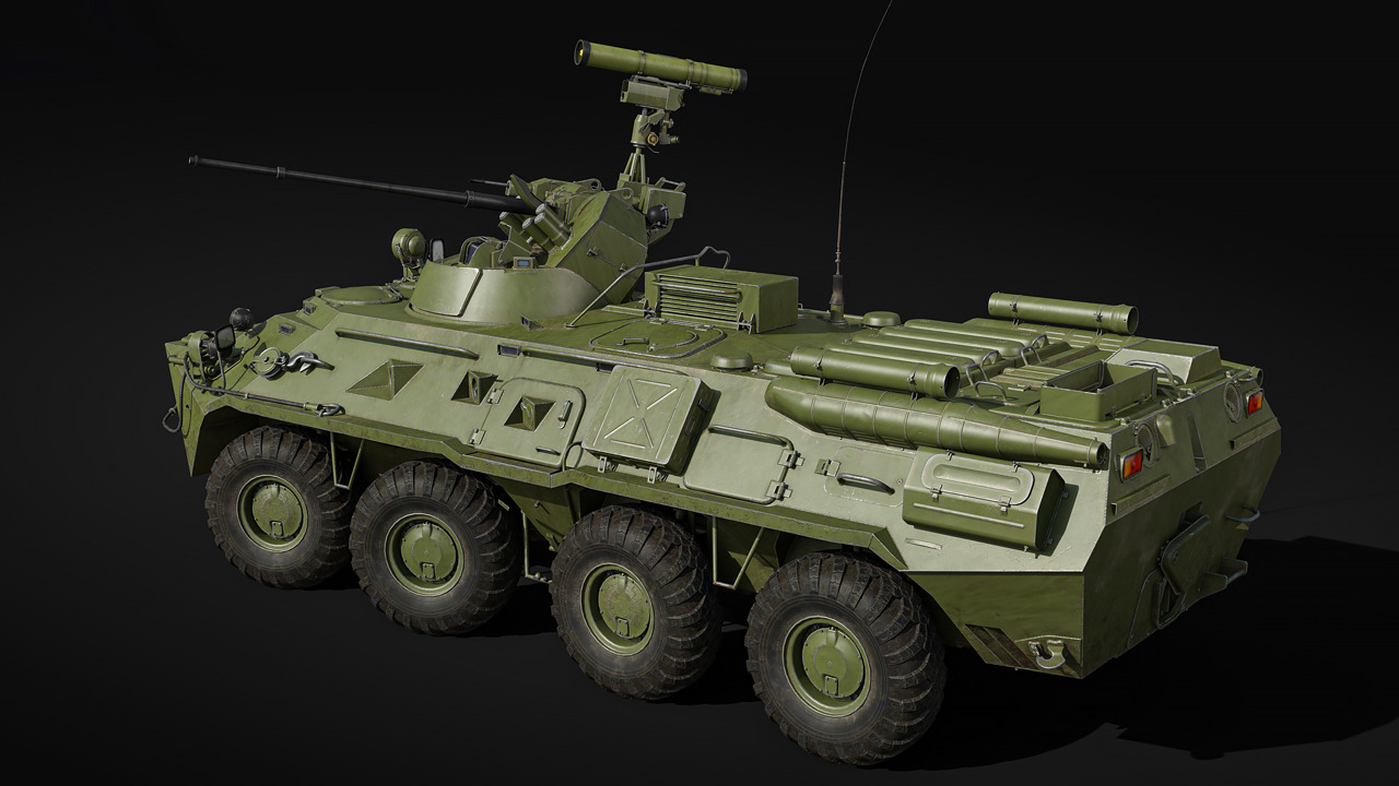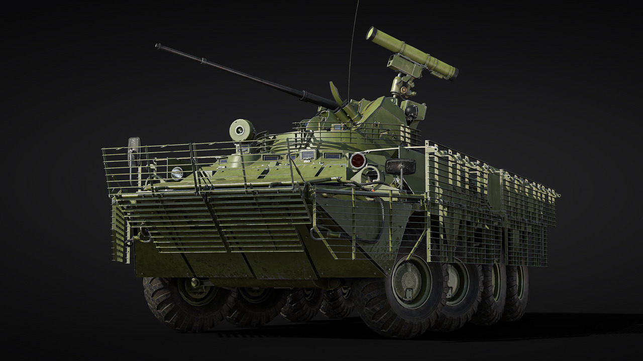 В обновлении «Остриё копья» в игре появится БТР-82АТ, современная модификация уже знакомого игрокам БТР-80А. Машина получила новый двигатель, усиленную защищённость, а главное — противотанковые ракеты 9М133 и долгожданный тепловизор! Пора познакомиться!
