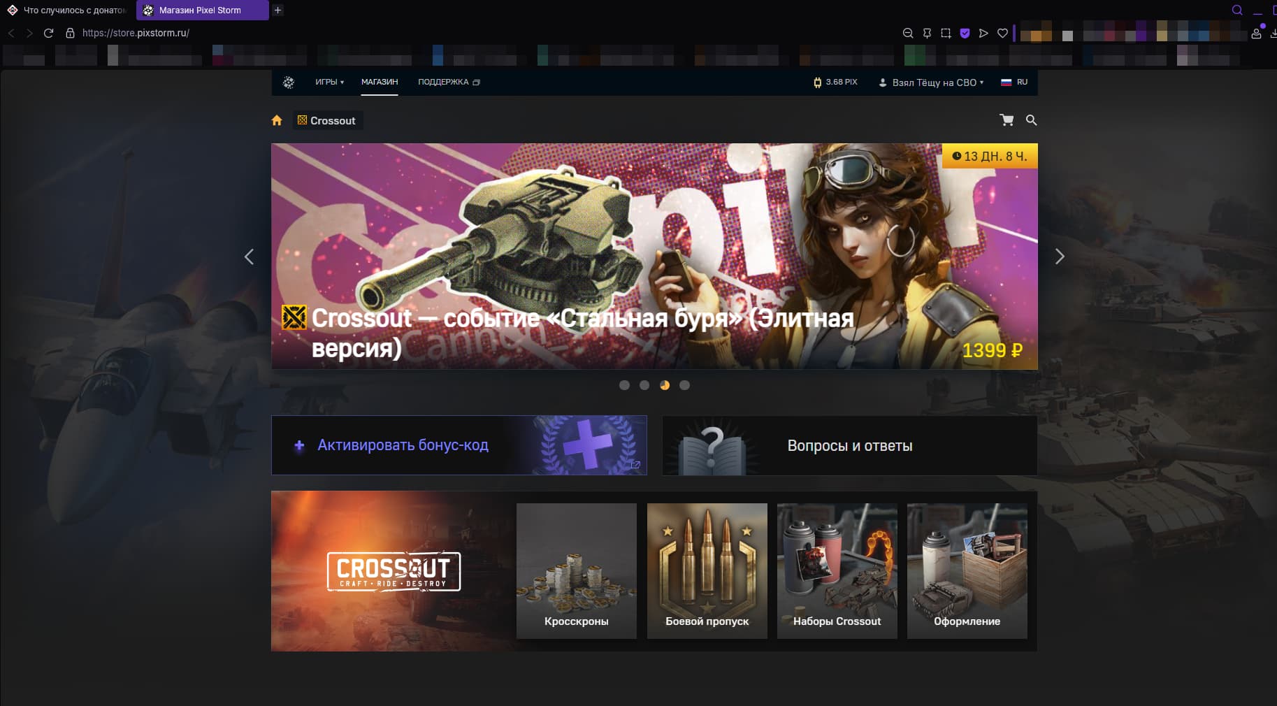 Перехожу в донат, нажимая кнопку “заказать” в игре на танке - кидает на кроссаут. Что это такое? Я танк хочу купить!!!