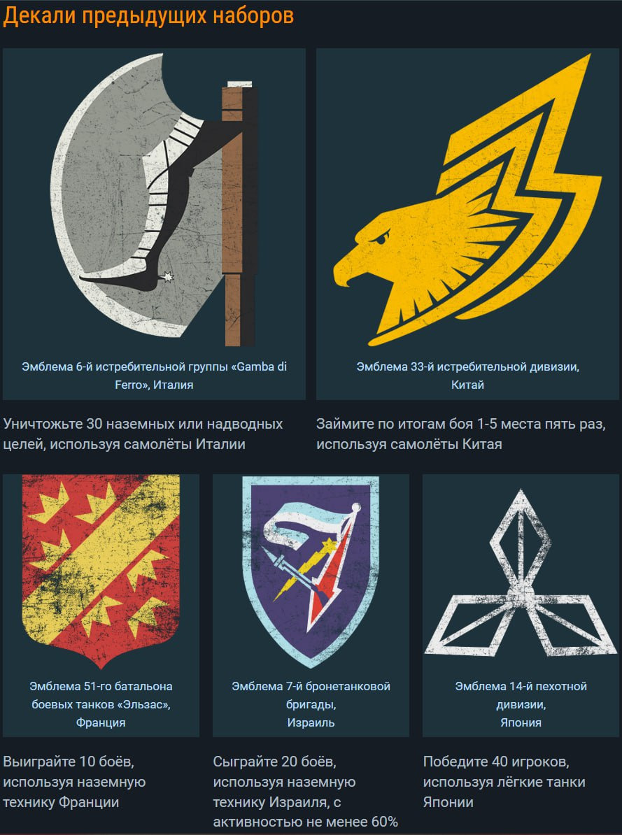 Следующие декали будут доступны для получения с 12 марта (14:00 МСК) по 13 апреля (12:00 МСК).