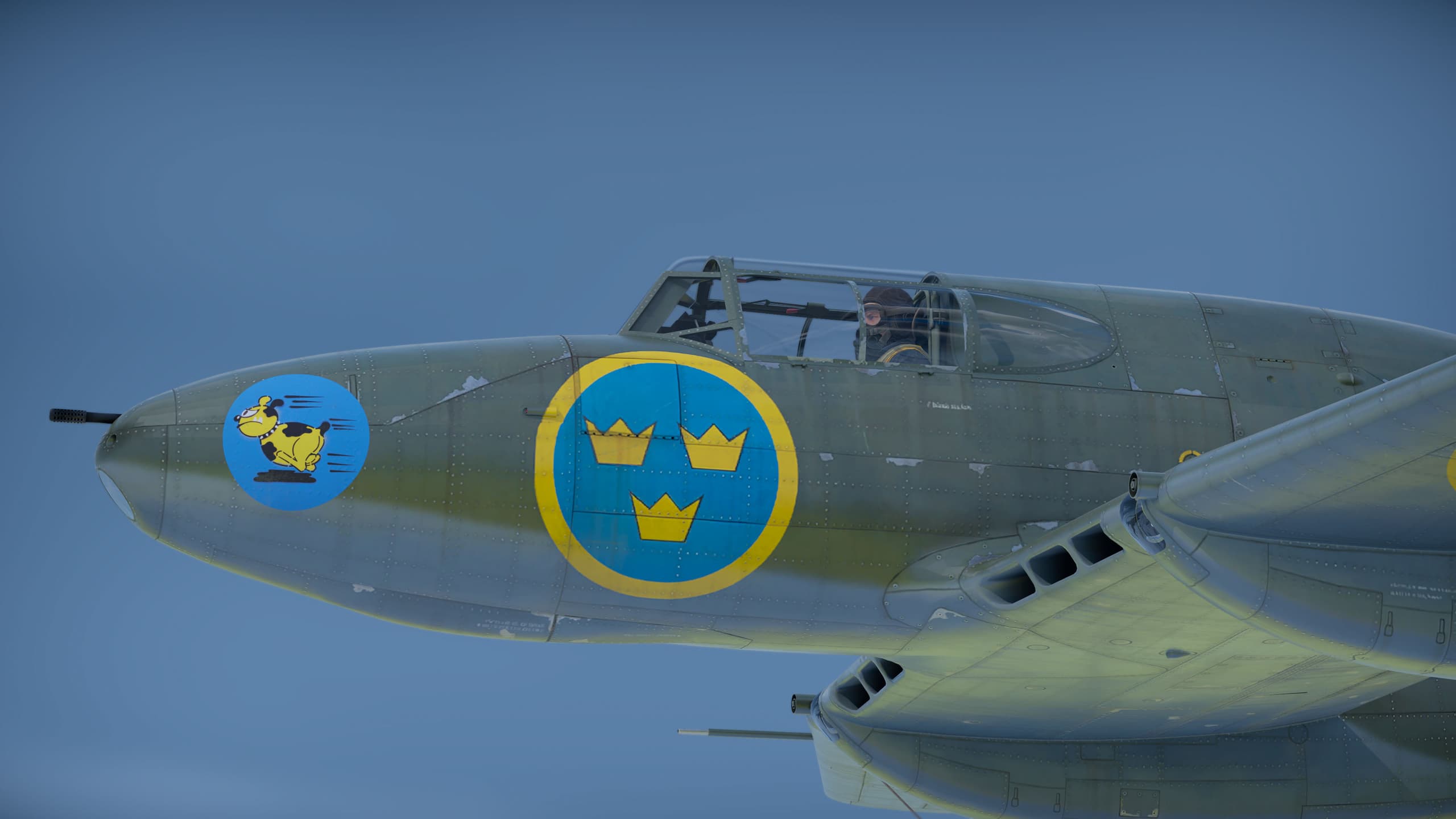 Эмблема 92. jaktflygdivisionen «Ivar Blå» (92‑я истребительная эскадрилья «Ивар Бло»), ВВС Швеции. Эскадрилья была сформирована 1 июля 1940 года; изначально летала на бипланах‑истребителях J8 и J11, после войны перешла на J21, а позднее — на реактивные J29 и J34. Эмблема эскадрильи была навеяна западными мультфильмами и получила имя Bonzo. Вероятно, название было вдохновлено собакой Бонзо — персонажем, созданным Джорджем Стадди в 1920‑е годы, хотя по дизайну они заметно различаются. Рисунки Бонзо также использовались в качестве эмблемы на шлемах пилотов эскадрильи и ещё встречались на авиабазе Севе после расформирования эскадрильи в 1968 году. Бонзо наносили на носовую часть ряда самолётов: на J21 эмблема была довольно крупной, а на J29 — значительно меньше, её часто рисовали между носовой частью и кабиной.