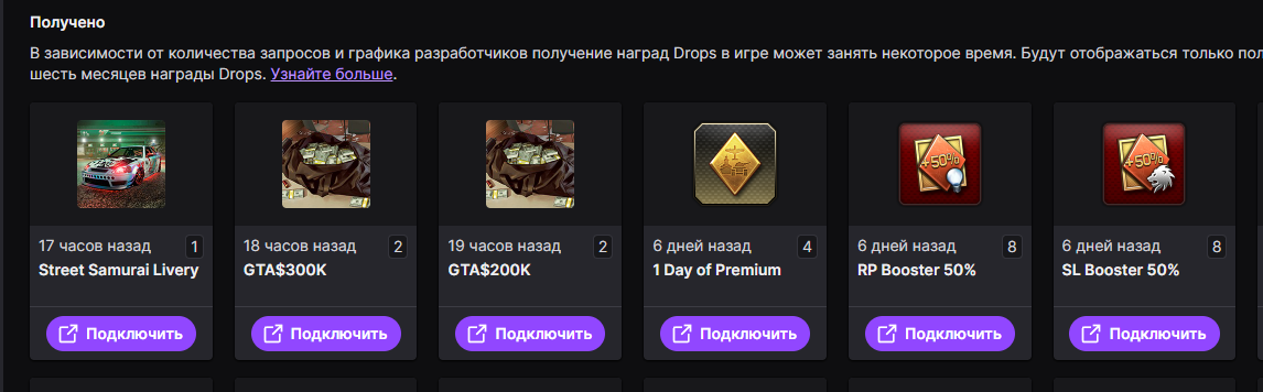 Что-то опять улиткины дропсы глючат, первый дропс нормально прилетел в игру, а теперь на всех трёх горит сиреневая кнопка подключить, при попытке пере подключить учетку твич пишет что будет доступна только 7го марта.
