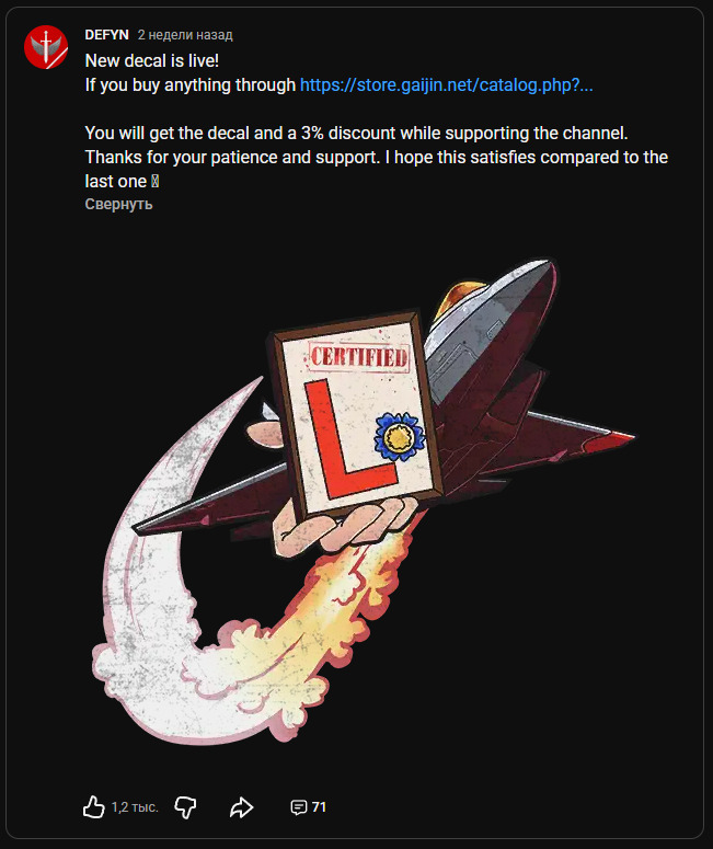 📢 Декаль DEFYN №86 была обновлена - “Skill issue” заменили на “CERTIFIELD L” ⤵️