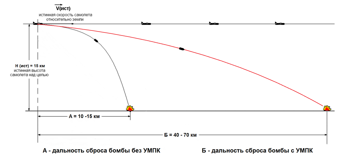 На дальность влияет масса факторов, но так или иначе бомба с крылышками не будет падать спустя условные 5км и высота сброса не шибко мешает кинуть бомбу на 17км.