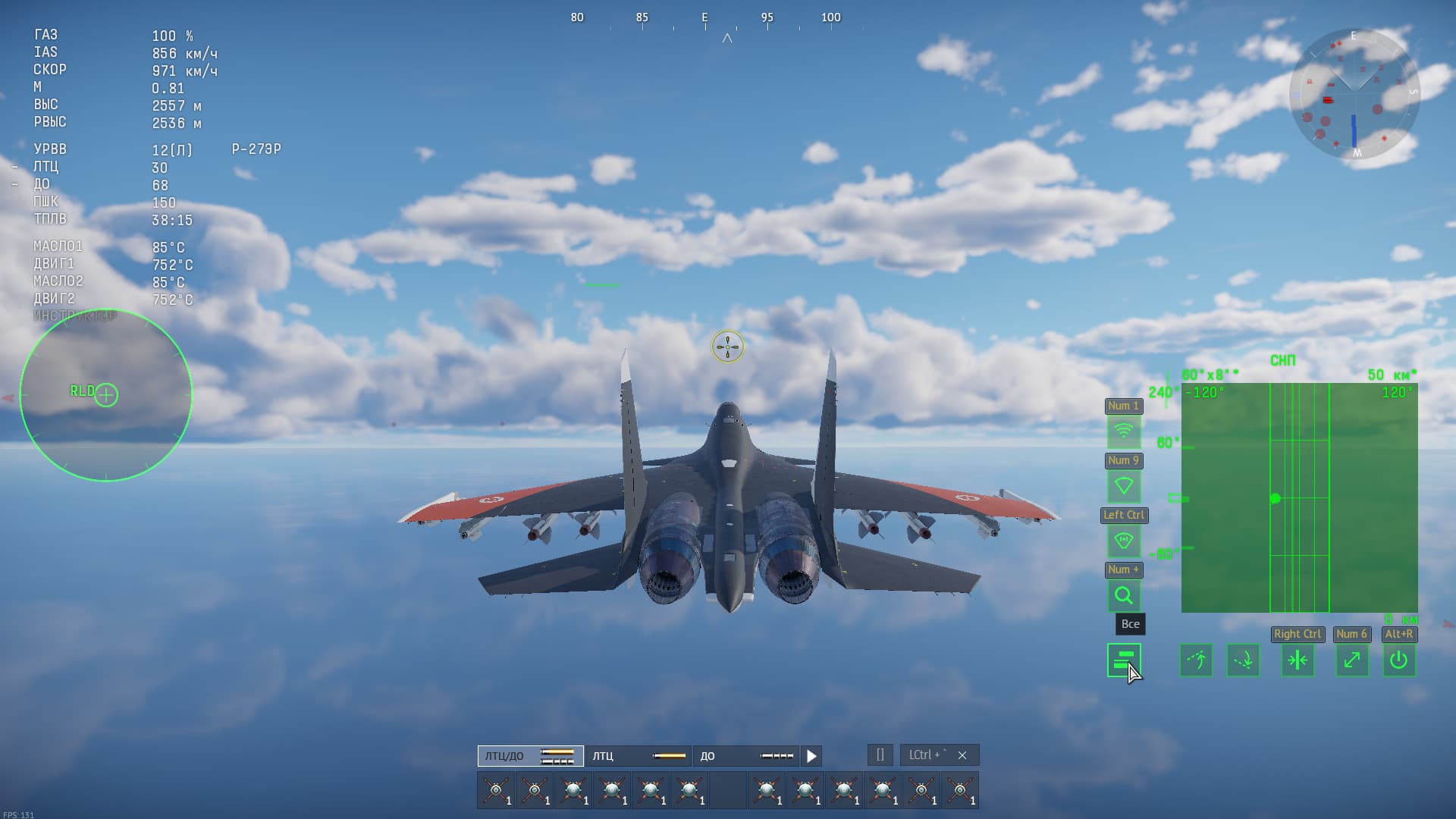 И так, мы имеем огромное кол-во АРЛ ракет, летящих чуть ли не по всей карте, и высокочувствительные радары. Складываем эти два фактора и получаем… Огромное кол-во ложных целей на радаре, из-за чего на выбор нужной цели, если она дальше зоны действия БВБ/НСЦ, необходимо сотни кликов по кнопке “Выбор цели для захвата РЛС/ОЛС” (и не факт, что когда выбор будет на нужной цели, палец по инерции в пылу боя не сделает лишний клик).
