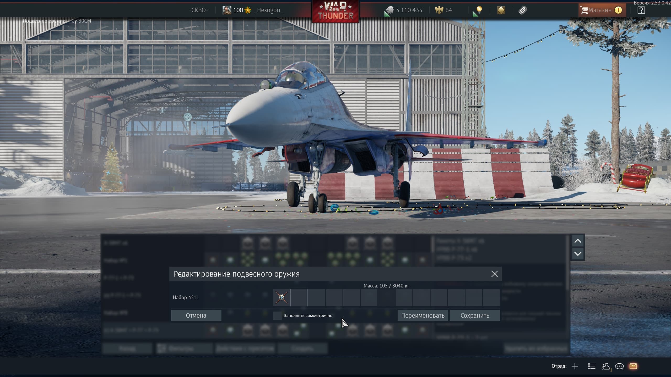 Предлагаю добавить вот такой переключатель в окно редактирования пользовательского набора подвесного вооружения самолета который бы включал симметричное заполнение т.е. все что игрок поставит на одно крыло автоматически дублируется на втором