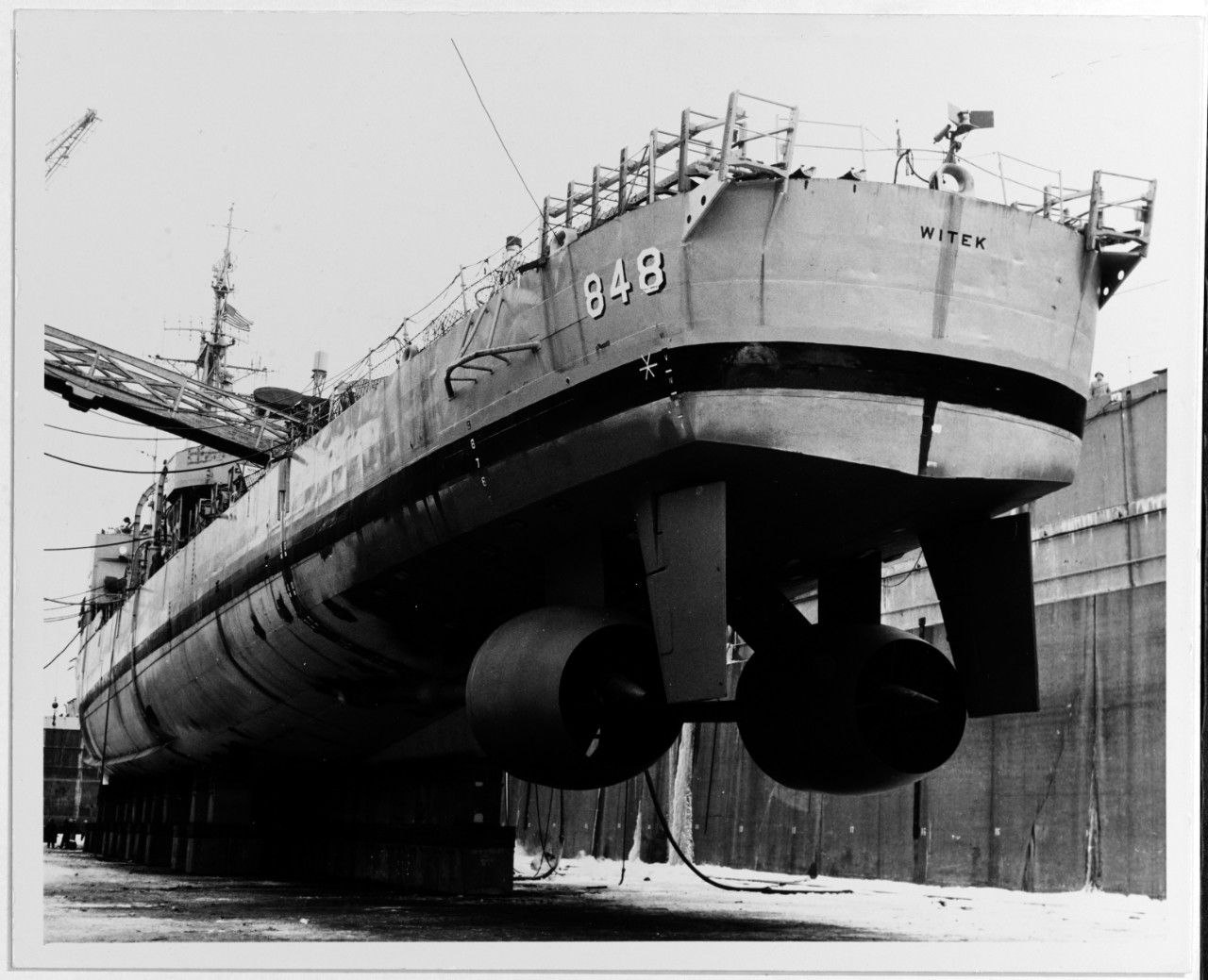 Экспериментальный эсминец DD/EDD-848 USS «Witek» класса Gearing был заложен 16 июля 1945 года на верфи Bath Iron Works в городе Бат, штат Мэн (БатМэн))) и спущен на воду 2 февраля 1946 года, введен в строй 23 апреля того же года.