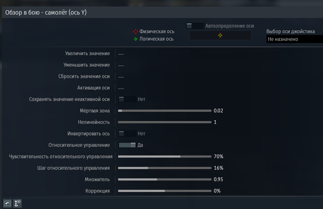 Выбери строчку “обзор в бою - самолет (ось Y)"
