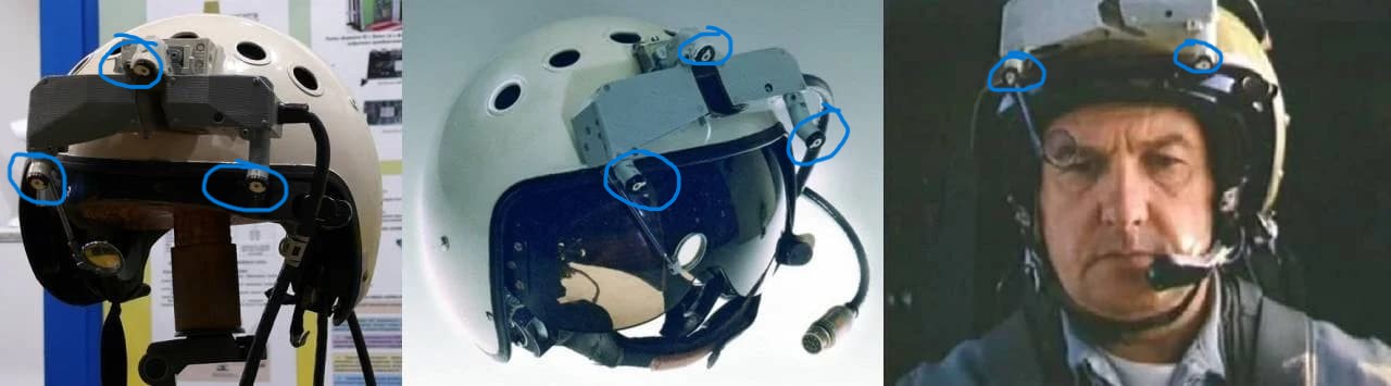 если правильно понял, то самолёт считывает положение головы по этим трём “рожкам”, но это как будто просто два ик-светодиода, а такое можно и на пнв закрепить