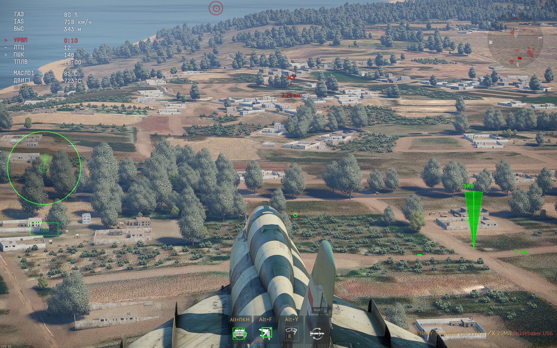 Кто-нибудь может объяснить почему на Су-22 от 3-го лица точка прицеливания ставится не туда куда лазер светит, а куда-то ниже всегда? Например на скриншоте с помощью обзора наводил точку на ЗСУ впереди, а поставилась где-то под носом.