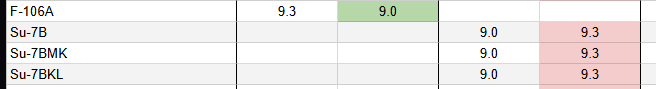 ф-106 которому и так жирно было на 9.3 с вулканом и нсц спустили на 9.0 , когда он лучше любого самолета в игре с 9.7, тот же 21с на 9.7 и хуже буквально во всём