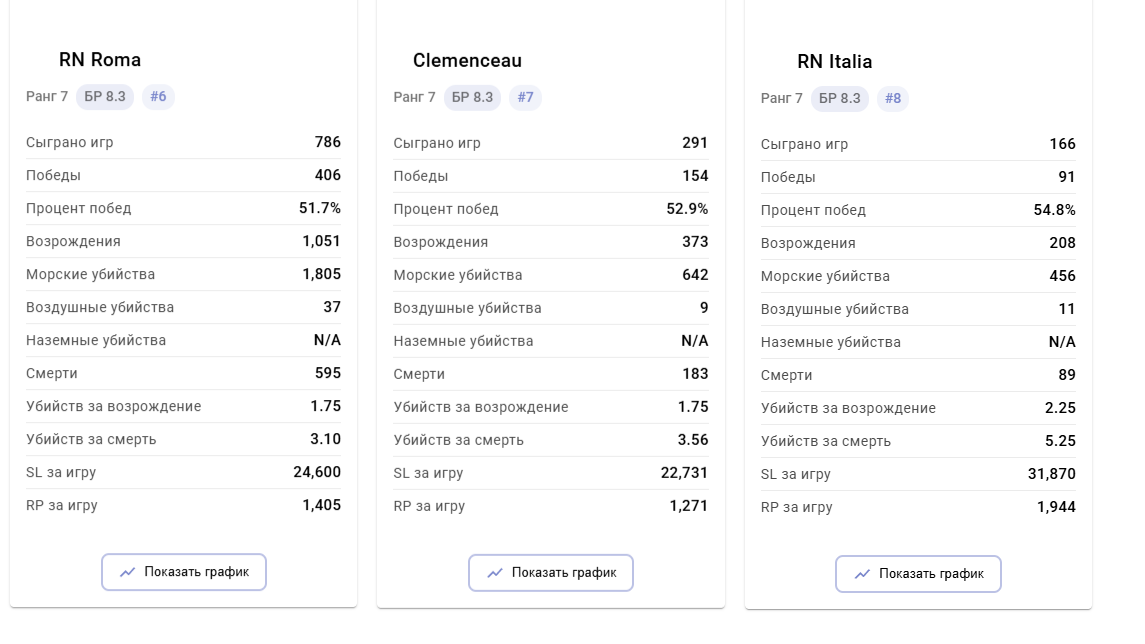 Интересно, что Рома и Литторио, будучи абсолютными клонами, показывают разную статистику )