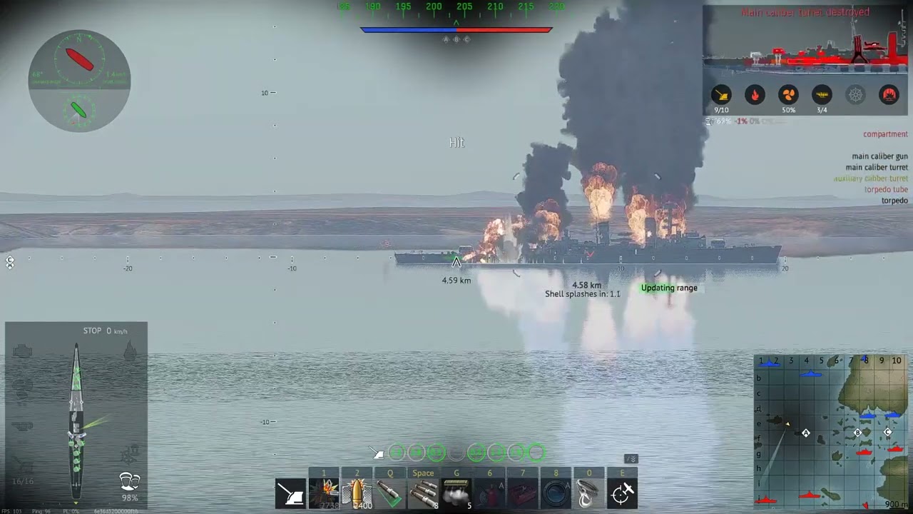 Эсминцы топятся где-то с 10 фугасов с пушек 114-127, тяжелые крейсера где-то с 10-12 203 мм фугасов, Кольн топит омаху с двух залпов.