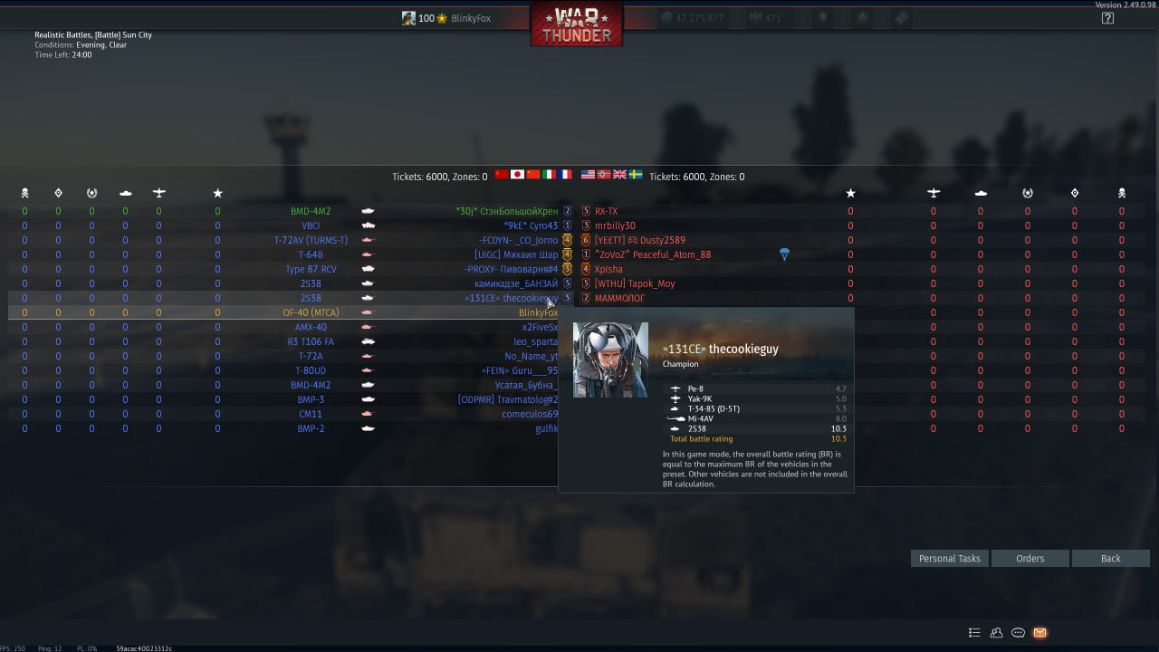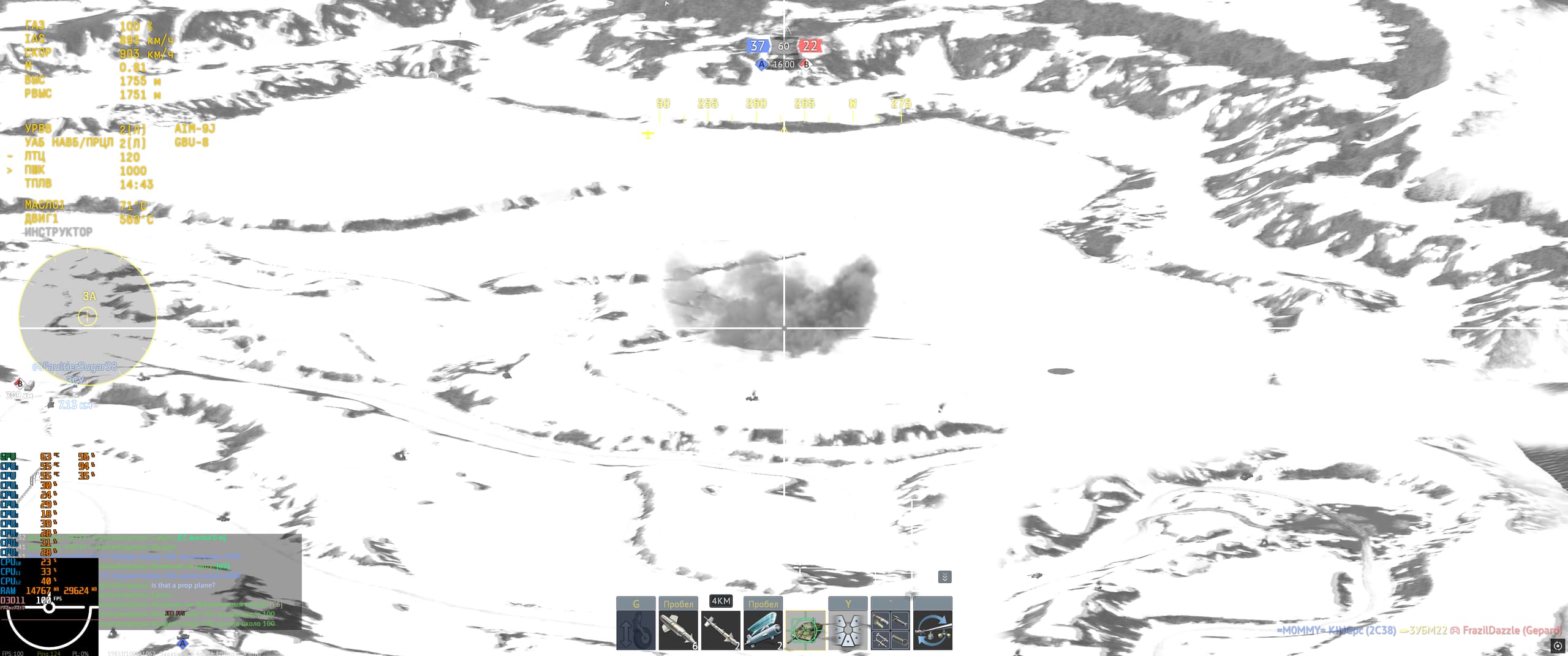 кстати, при такой погоде даже просто долететь на самолёте до танковой карты - задачка - весь рельеф вокруг карты в облаках целиком. Ну и из-за формы карты дистанция видимости у самолётов - пару сотен метров сразу после пикирования. На топ тире вылет на этой карте при такой погоде становится полностью бесполезным, так как никакое управляемое вооружение применить нельзя