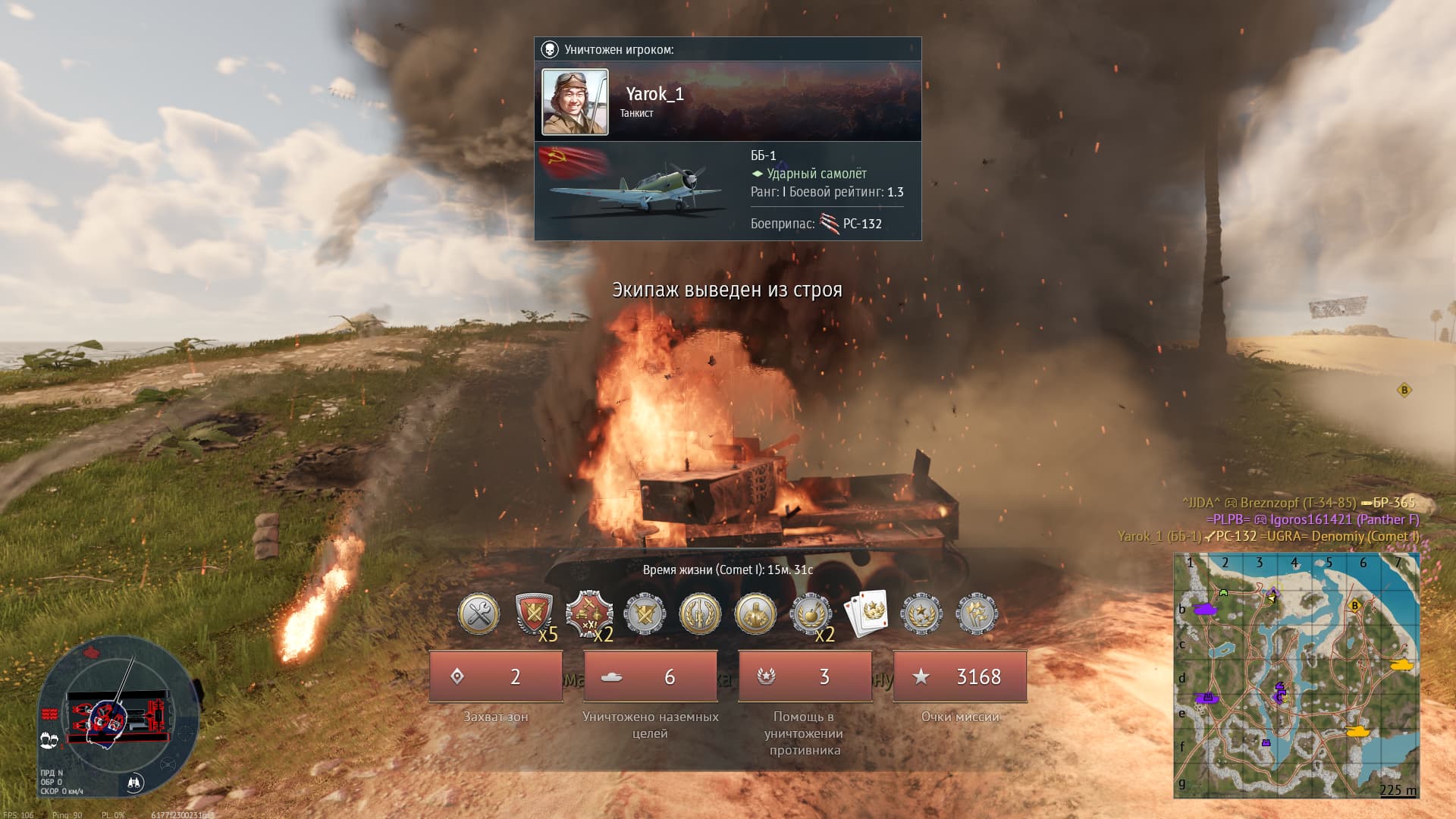 и хелл кет мк2 порадовал, за 2 захода из 6 реализовано 4 бомбы. Это все тигротапок, черт его дери. Первую хорошо положил и просто осколочки что то ему пожелтили, второй снял гусеницу и орудие выбил.