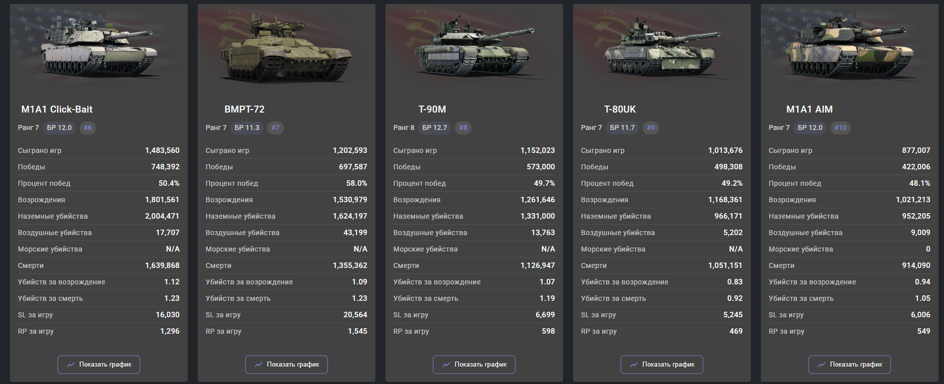 Однако из 10 самых популярных танков топтира 6 за СССР.