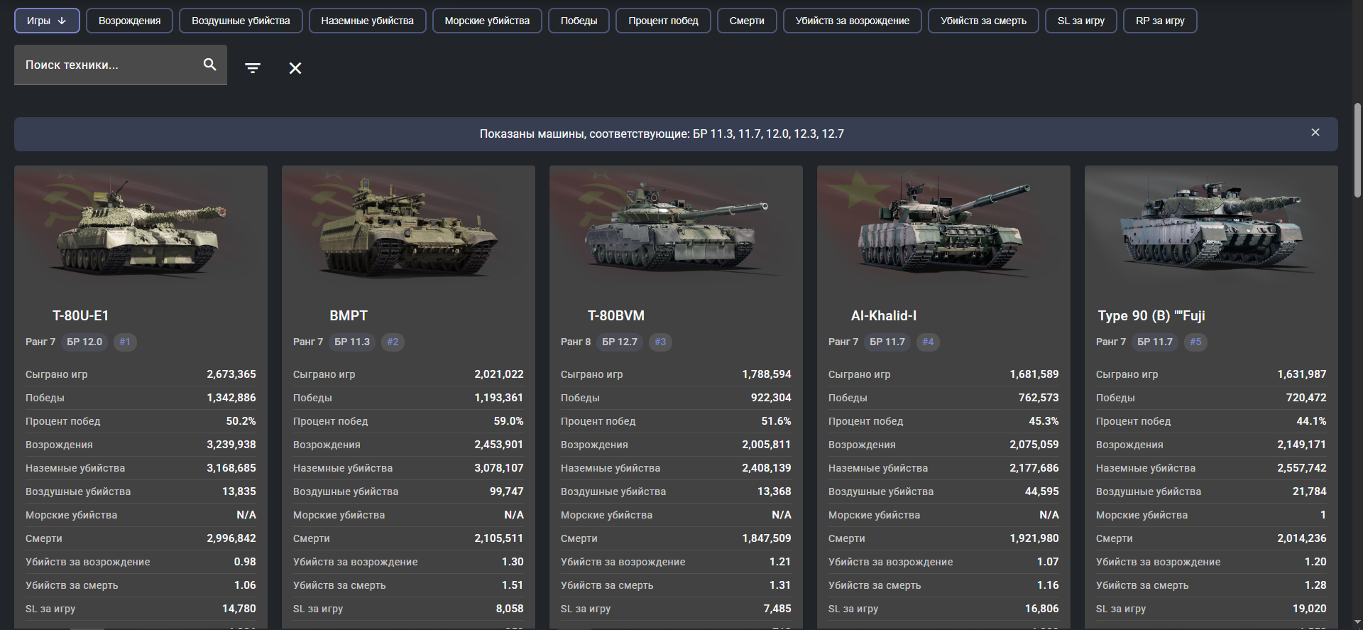 а теперь посчитай, сколько из этих боёв дублируется, то есть техника была использована в одном сетапе.