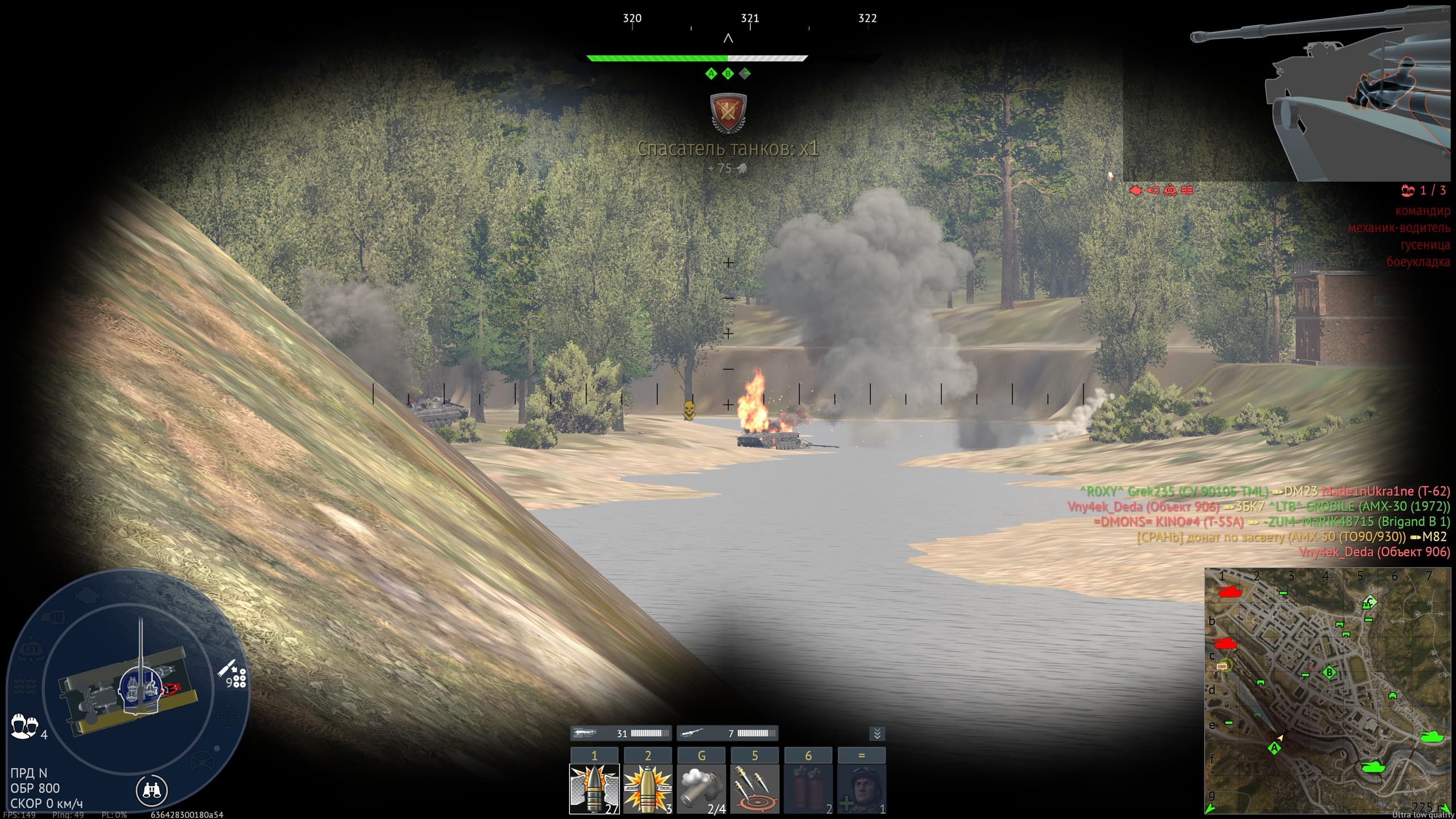 Вот там вот прямо в воде об-906 был. Я заехал и прям в бинокле на моих глазах он чудесным образом пропал. Как выехал - снова появился. И разраб всё ещё кичится реализмом. Ахахахах.
