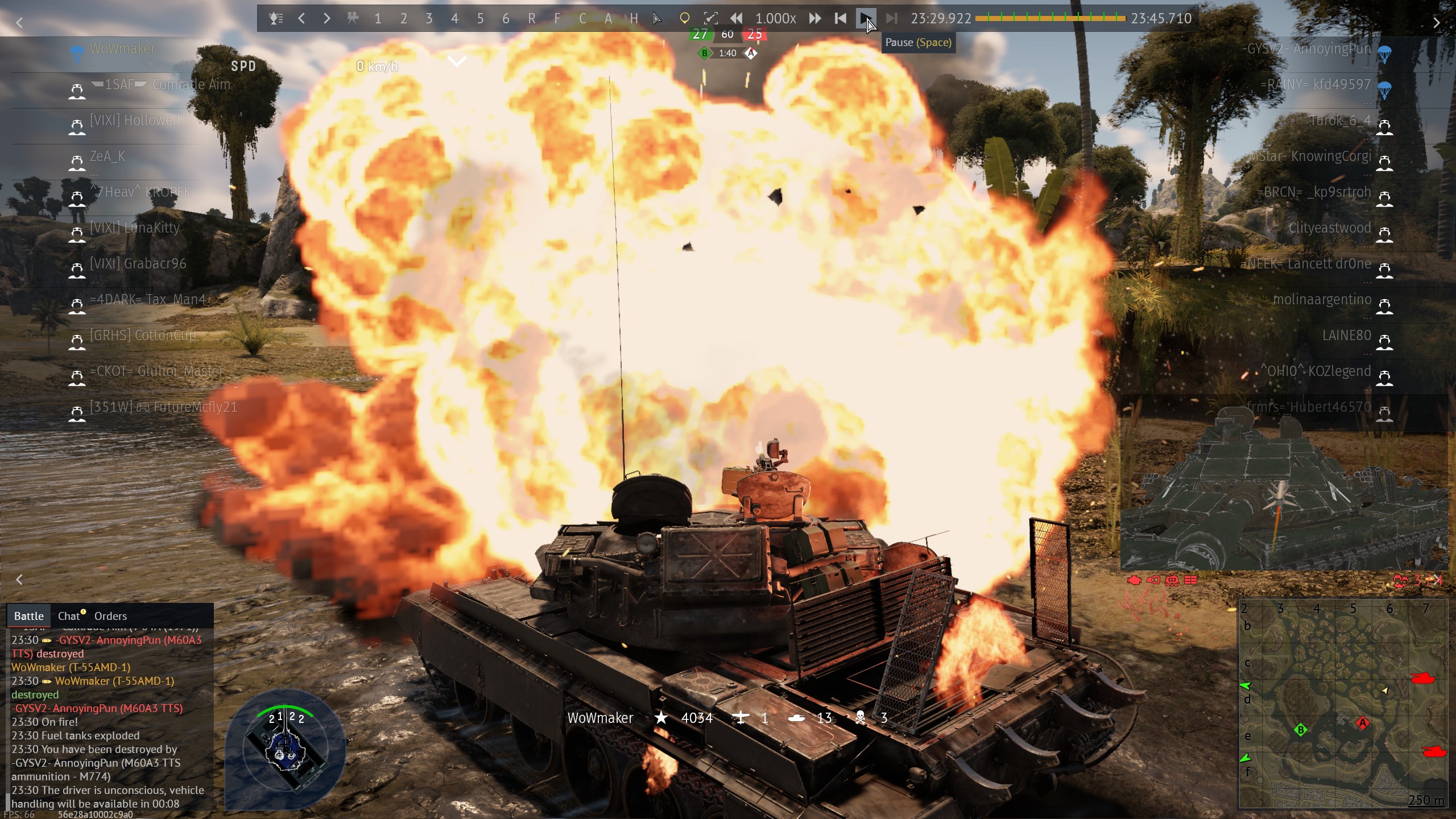 у улитки какой-то рассинхрон идет по появлению команд на респе в начале боя, или это рпу, хз, в общем. Сначала думал показалось, перед этим играл на городской карте, переправа через рейн, как только появилась наша команда , а противник уже успел занять улицу практически рядом с респом. Теперь вот, карта курск, приезжаю на пуме (сетап 3.1) на точку С со скоростью свыше 60км/ч, нигде не задерживался, рванул сразу со старта респа, а ее уже занимает вот это чудо КВ-2… Подключение к уже идущим боям отключено.