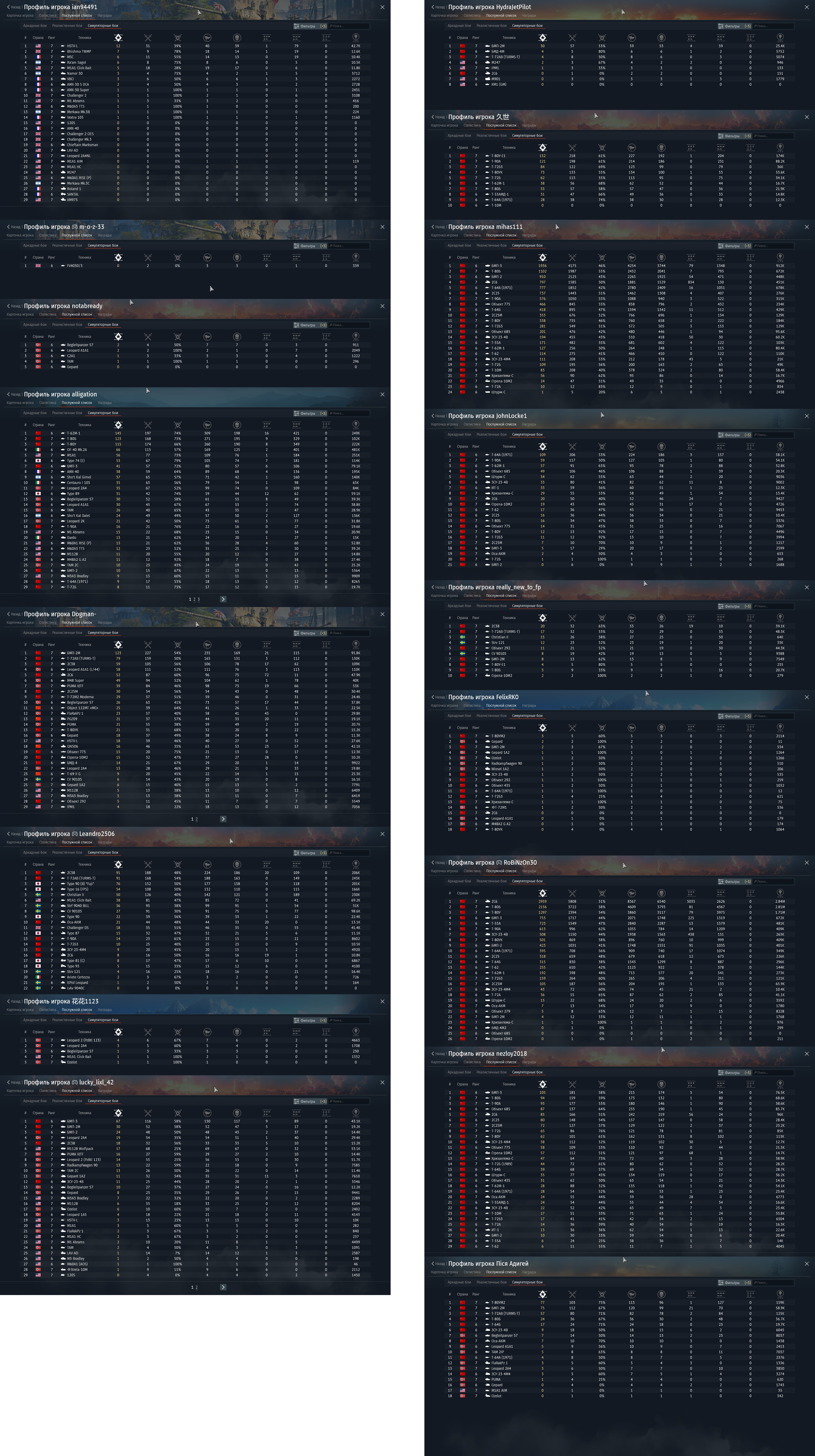 Сейчас потыкал свои повторы с 10_2 и обнаружил интересную вещь. Действительно, есть принадлежность к команде. Но в 9 случаев из 10 - это будет красная команда. Типов которые мейнят какую то нацию из или просто НАТО - кратно меньше. А упорантов только с красными флагами в стате - почти вся красная команда. Вот срез с моего боя на Мажино. Так что ты в общем прав - новички с одним премтутлом в основном оказываются за нато, а у советов всегда полный сетап нормальных танков, даже при том, что управляют ими пивняги с 0.9КД