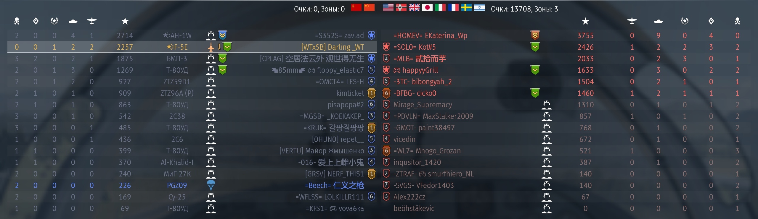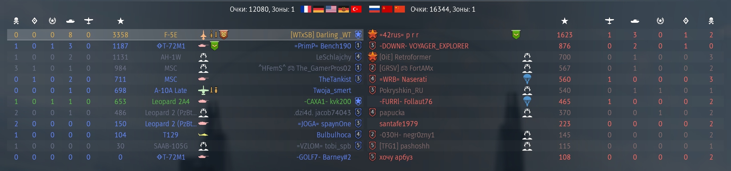 Американцу (F-5E USA) конечно ещё тяжко играть против красных, а вот Тайваньский (China F-5E) показывает замечательные результаты в [10_2] сетапе ТСБ из за отсутствия 2С6 и его аналога у синей стороны.