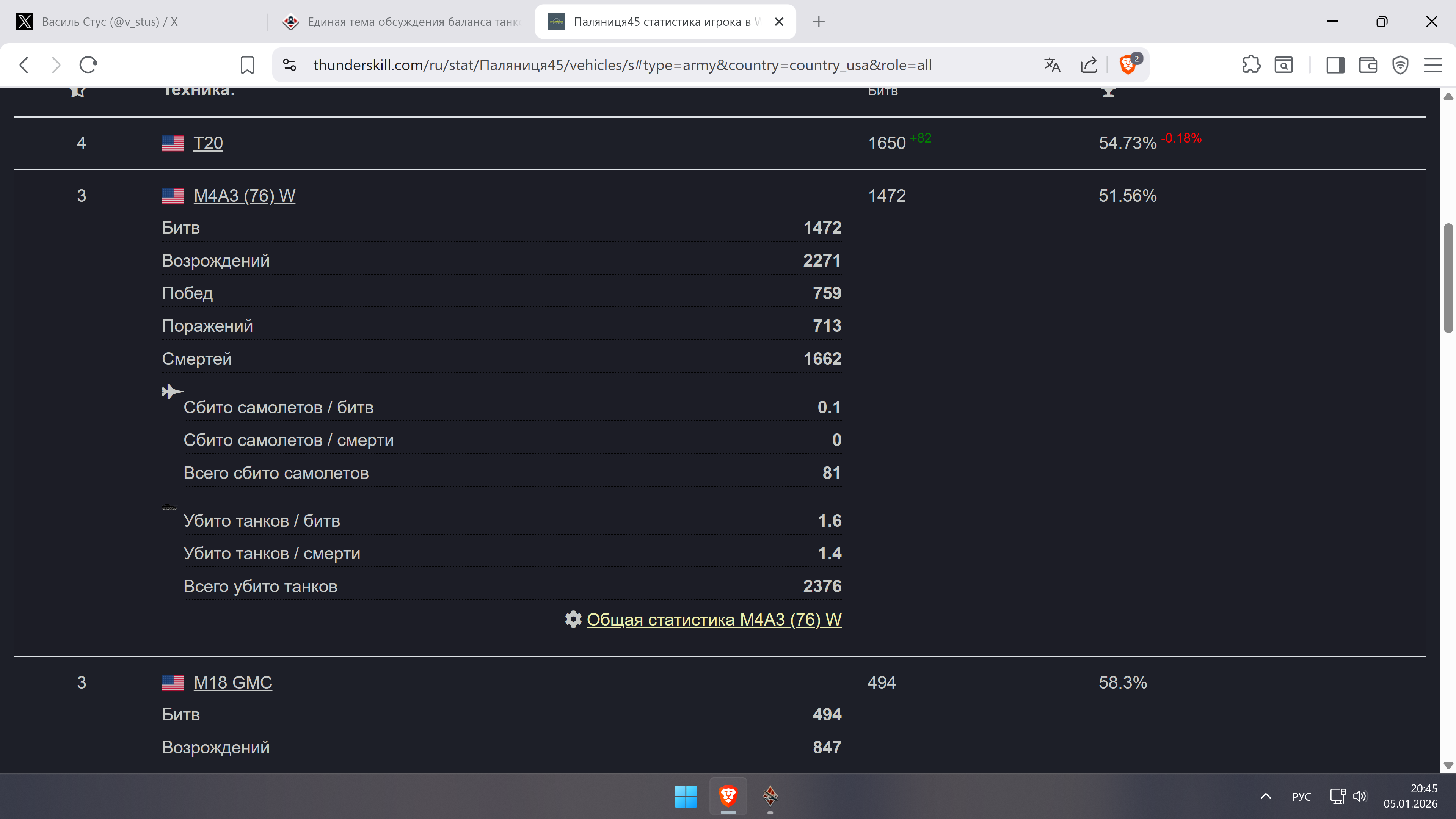наверное вы правы, старость не радость, извиняюсь… потому и топил за зенитки на танках, где они были исторически. Ну но что авиация вырезала наземку -заявлено уж слишком громко, да, бывало, но это ни в какое сравнение не идет с нынешней ситуацией с Ил-2, согласитесь. Зенитки в командах скорее были, чем нет, плюс сбивали более-менее нормально, кто умел и обычными зенитными пулеметами. Вот взял свою выдержку на шерман М4А3(76), 81 сбитый самолет -достаточно не плохо, учитывая, что ранее не вкаждом бою вообще тот самолет встретишь.