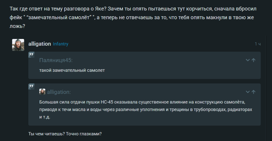 Так где ответ на тему разговора о Яке? Зачем ты опять пытаешься тут корчиться, сначала вбросил фейк " “замечательный самолёт” ", а теперь не отвечаешь за то, что тебя опять макнули в твою же ложь?