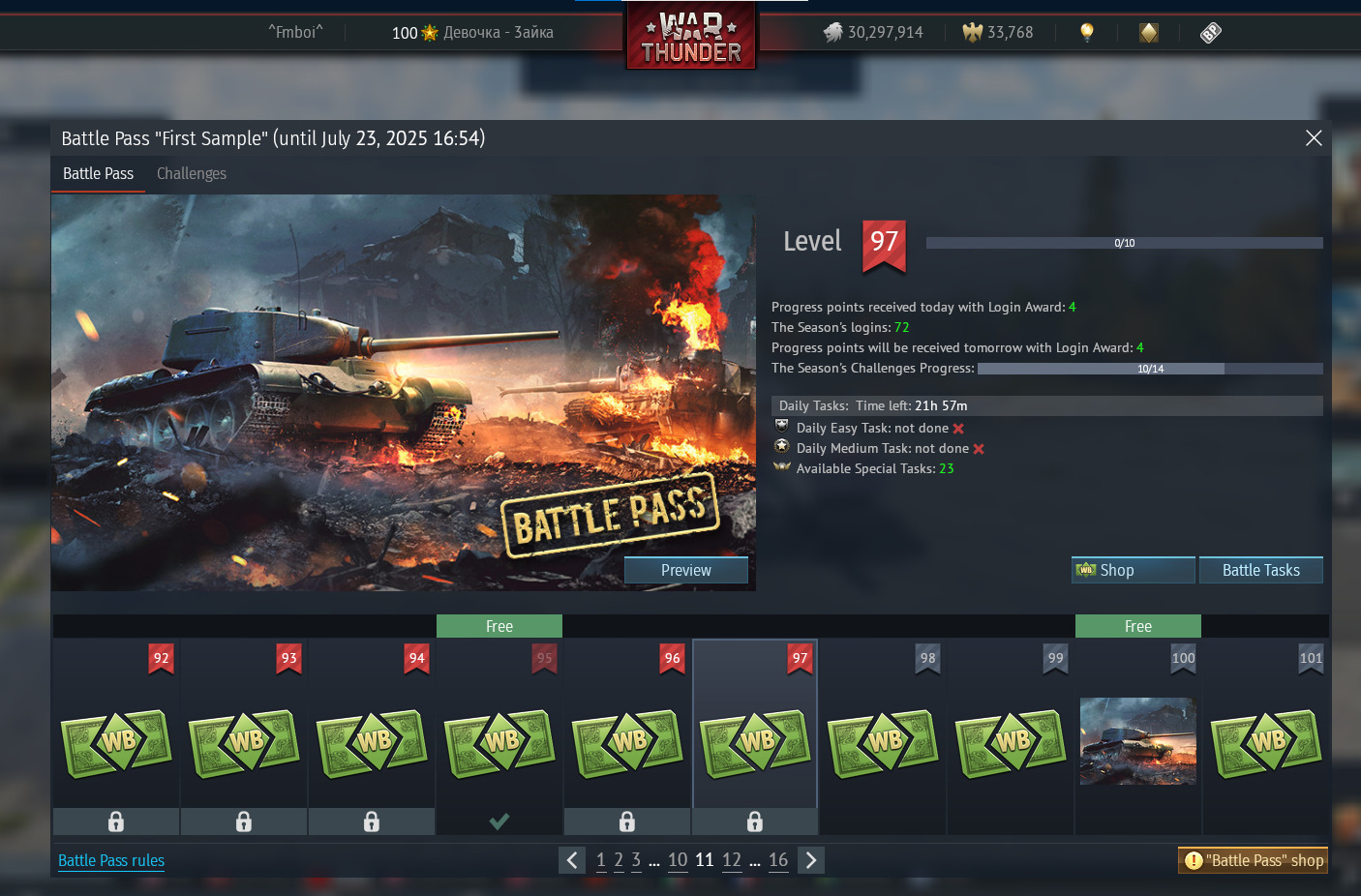 5-6 заданий БП + 10 дней с 2 дейликами + 10 рандомных медалек