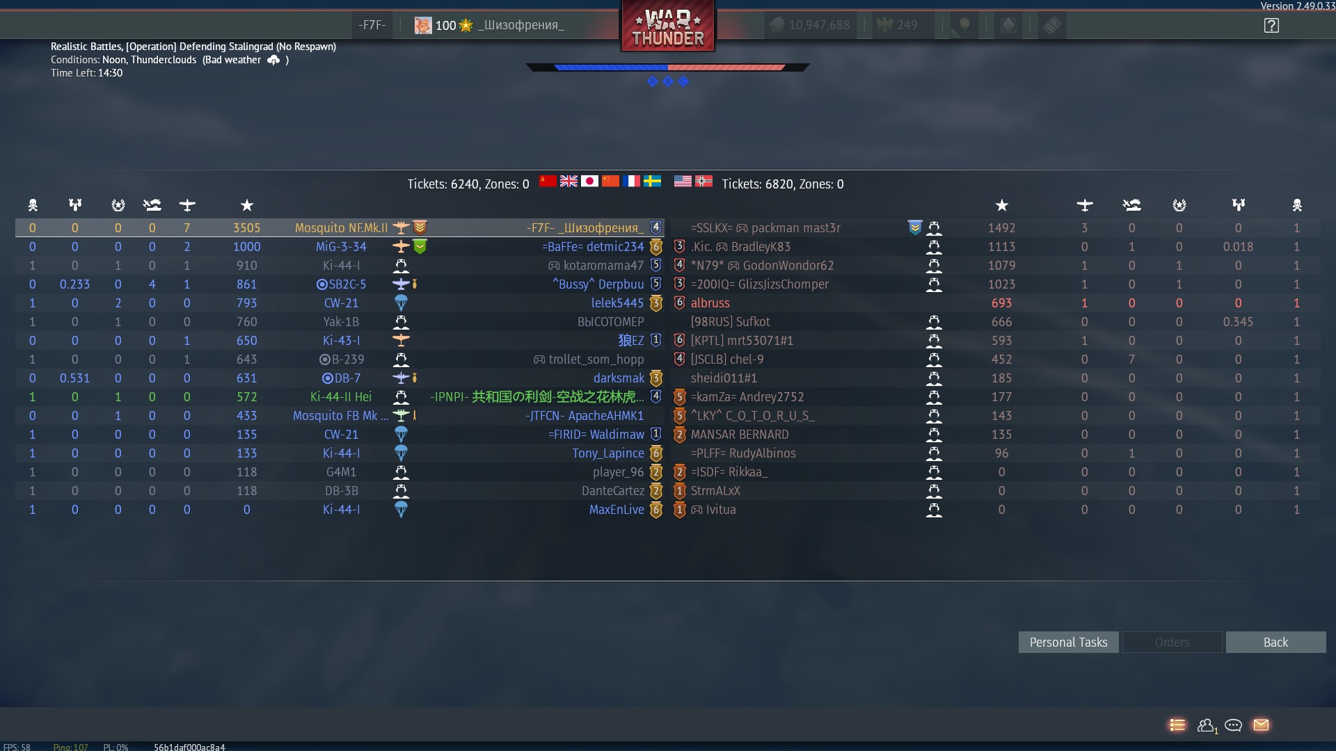 Первый бой на новом Москито. После него, кстати, идет гораздо более крутой по карточке, но который весит на 1100 кг больше и имеет те же движки москито (не качаем)
