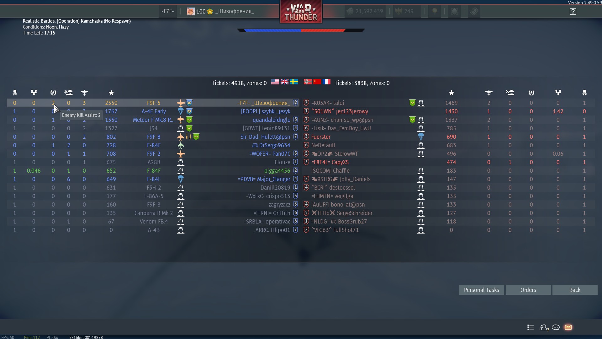 Везет с фраги только на 7.7-8.0 амеров, я там отлетал боев 30 всего и уже было штук 5 боев на -9 на F-80C и F9F-5 и 10-ка на F-80C